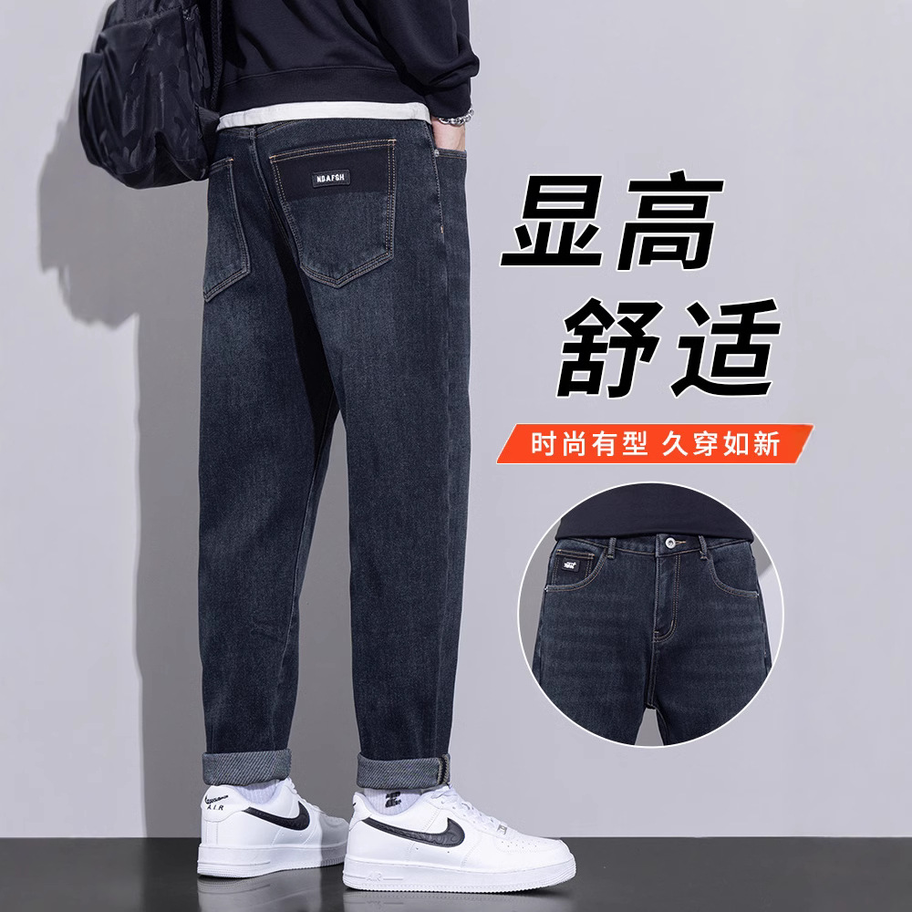ジーパンの男性のゆったりした直筒2025新型のファッションブランドの水洗いカジュアル春秋テーパーの弾力性のあるズボン