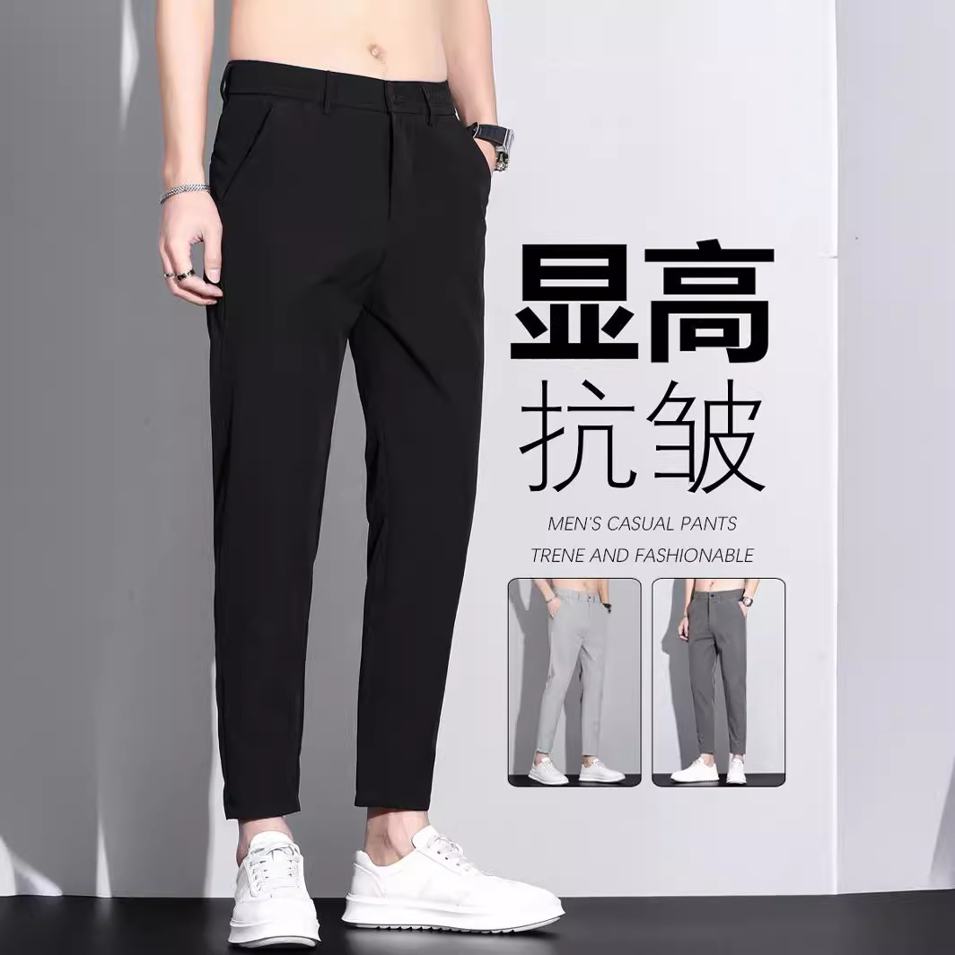 黒九分ズボン男性修身氷糸薄手小西ズボン男性2024夏の新型カジュアルパンツ