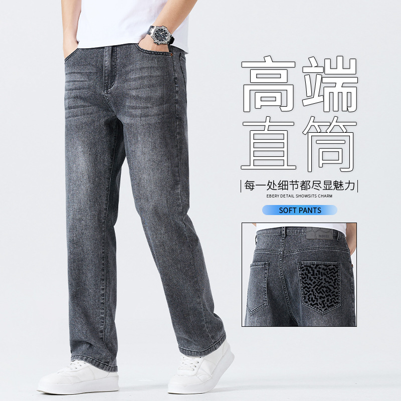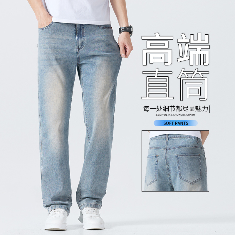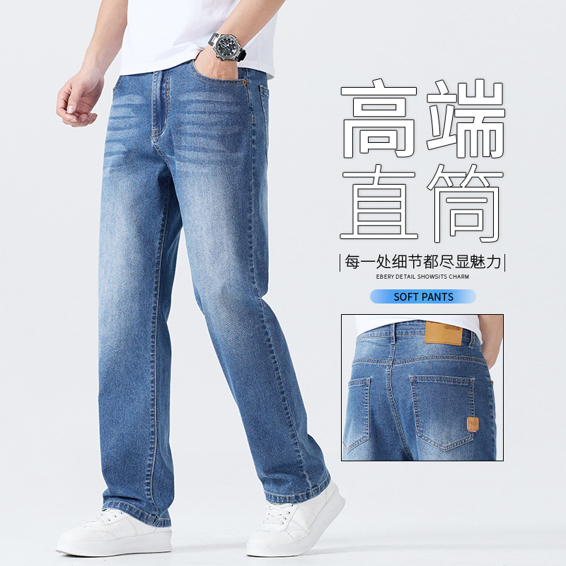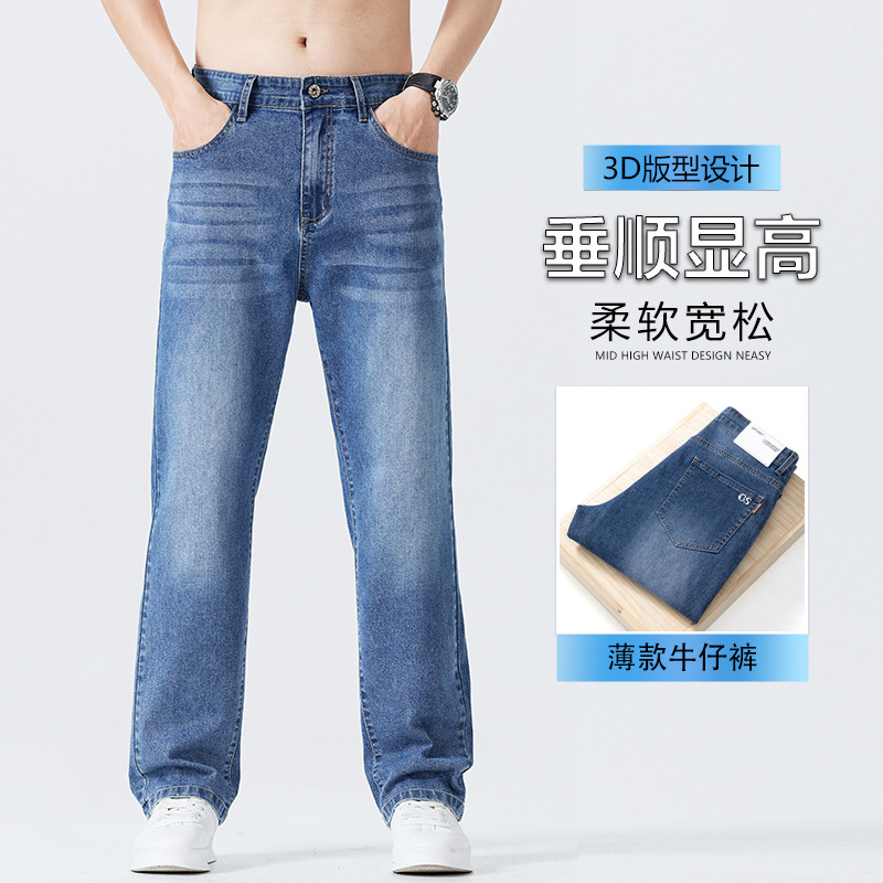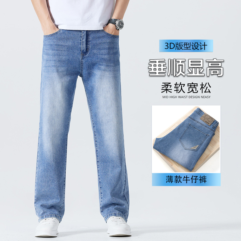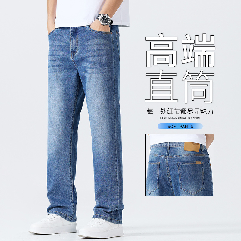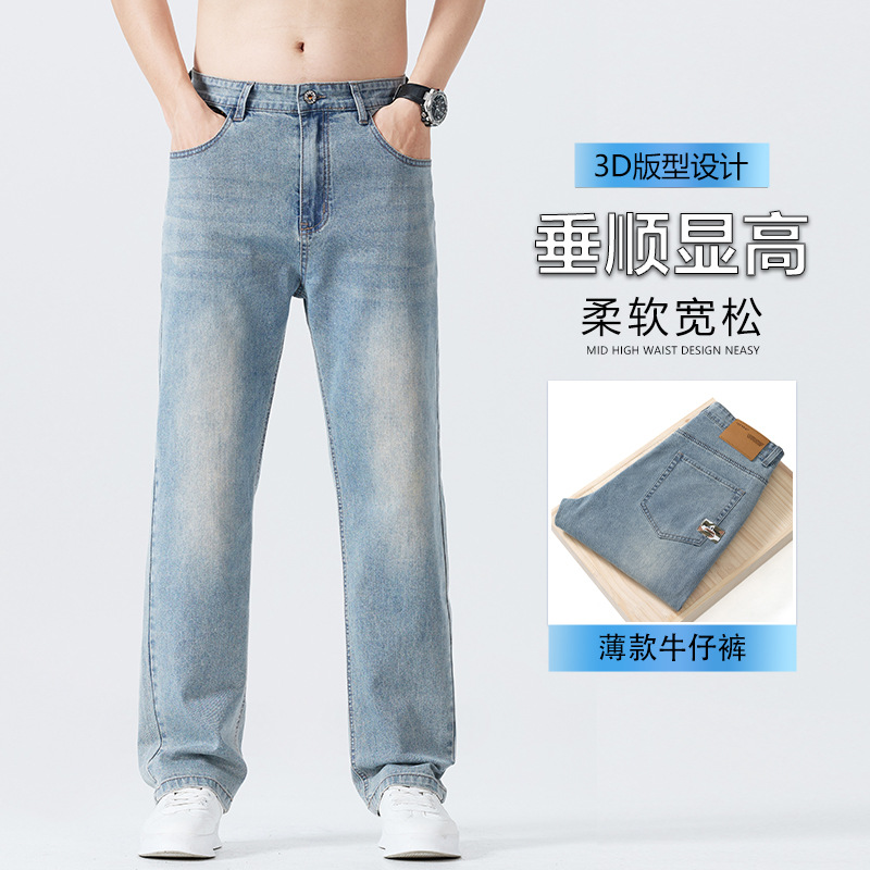 薄いメンズハイエンドジーンズストレートレッグルーズビジネスカジュアルストレッチ2025新しい夏のロングパンツメンズパンツ