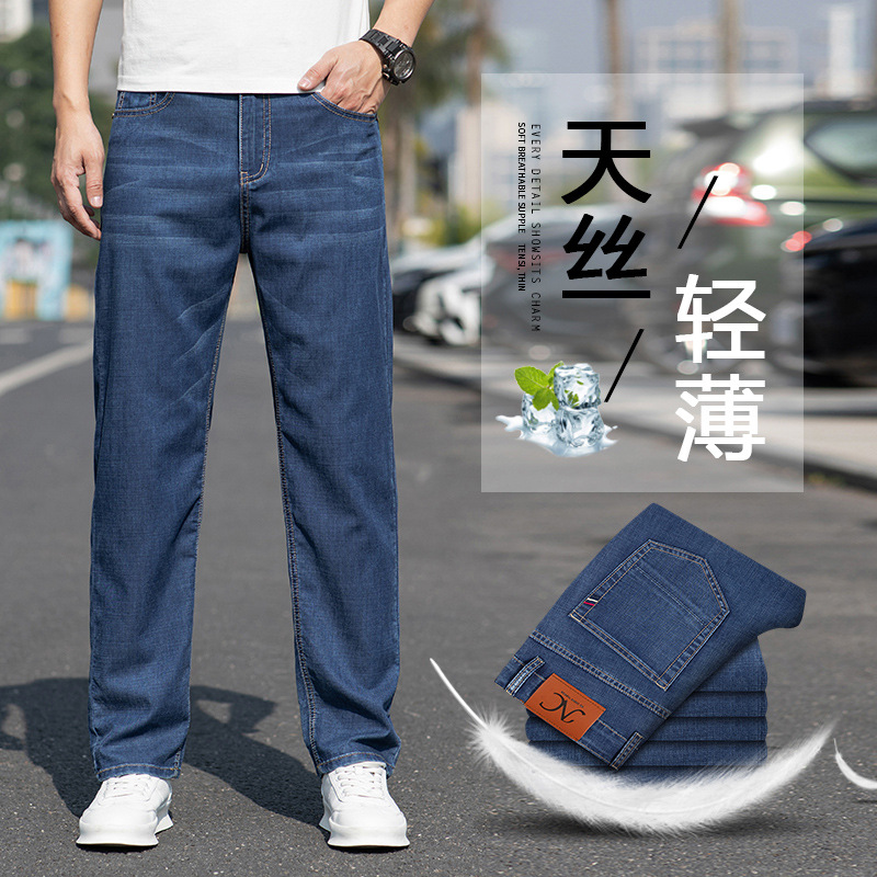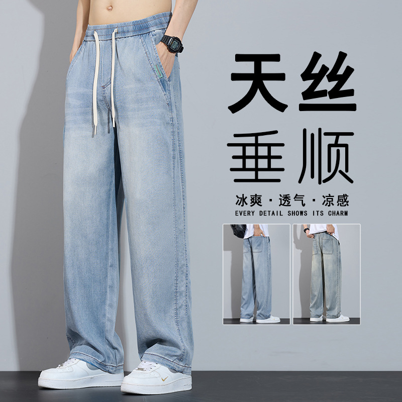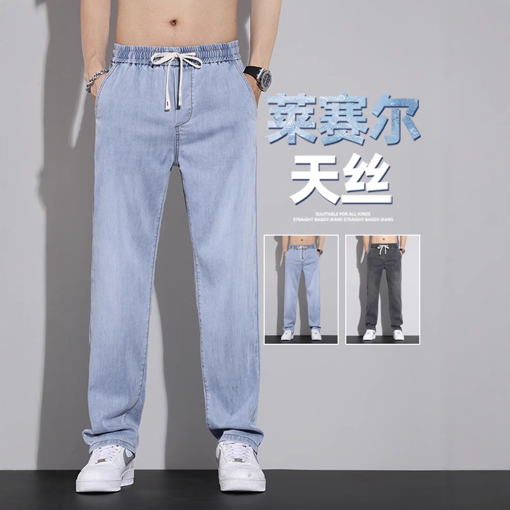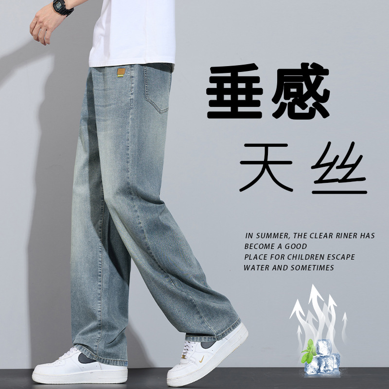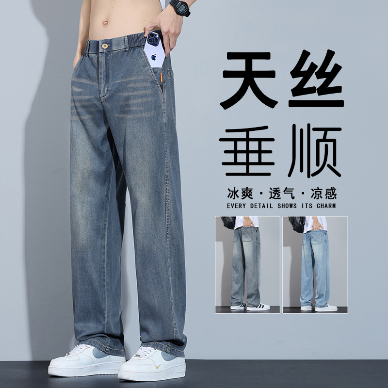 春夏の薄手の天糸ライセルジーンズ男性2025新型ゆるいカジュアルストレートパンツ男性トレンドズボン