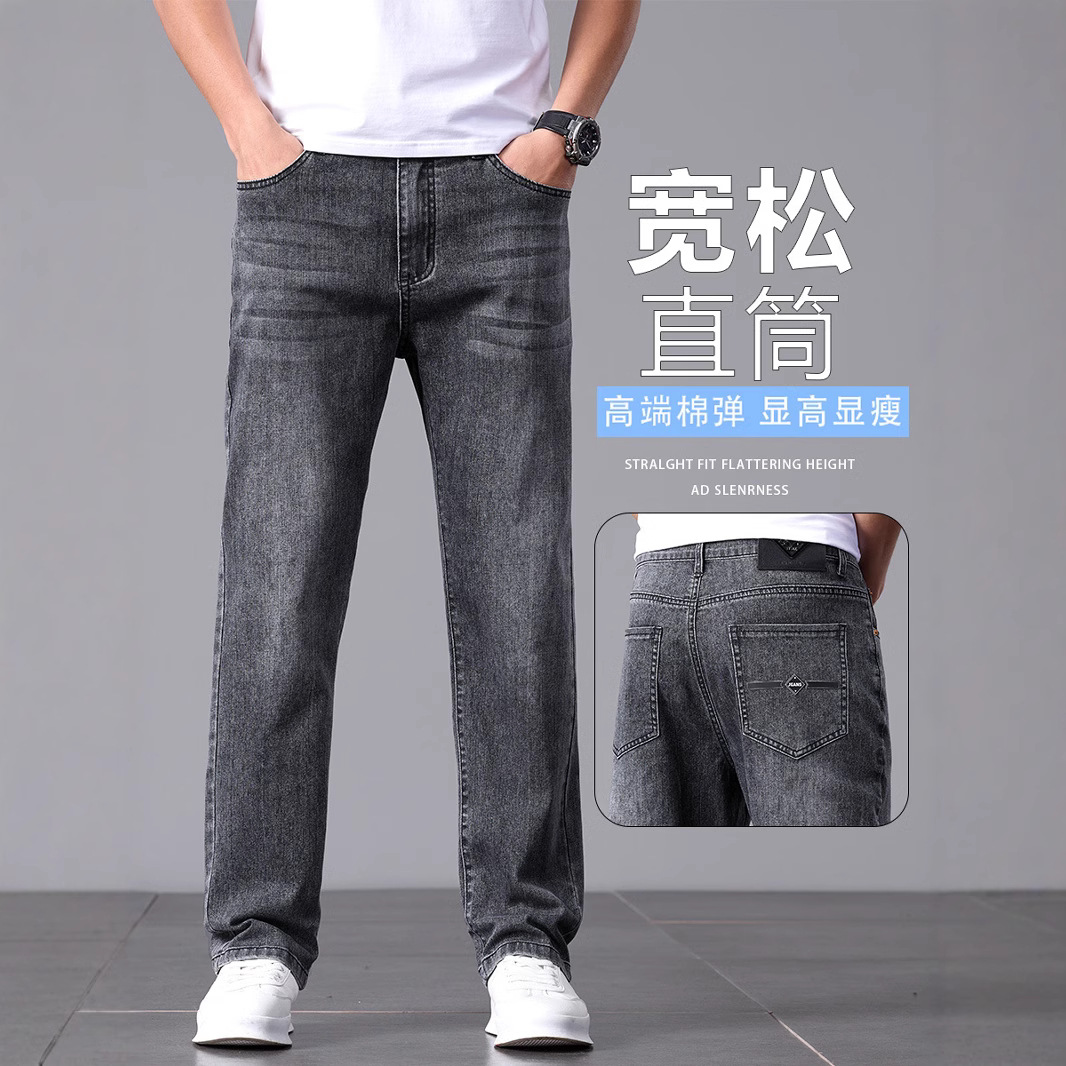 2025 新しいハイエンドジーンズメンズ夏薄いルーズストレートパンツ中年ストレッチカジュアルパンツ男性