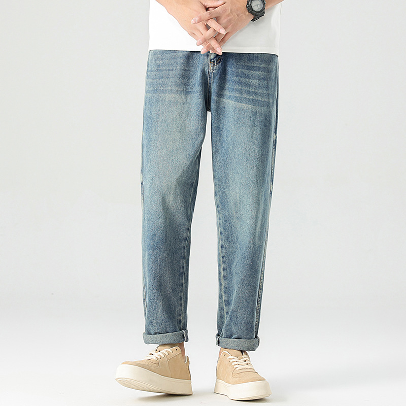 2025新型9分ジーパン男性夏の薄いタイプの男性の微ゆるいストレート男性のレトロな弾力性のズボンの潮