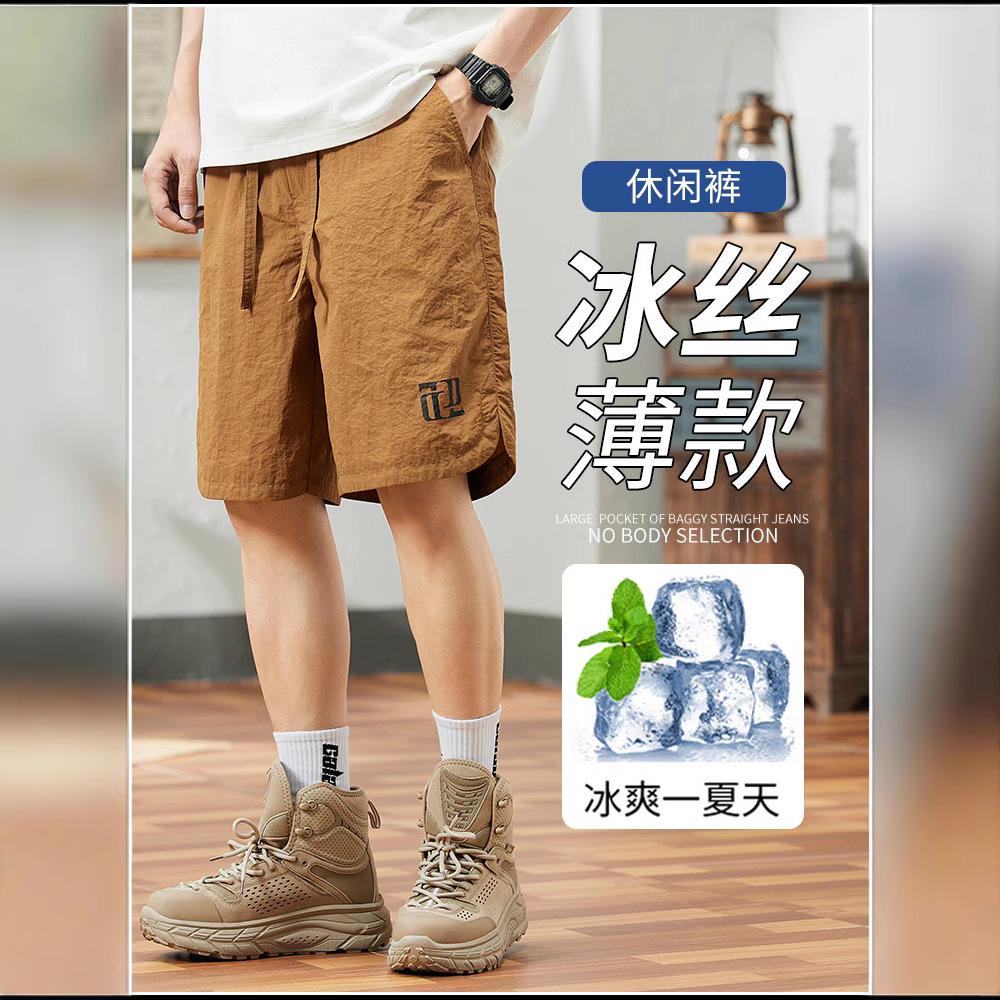 アメリカの半ズボンの男性の夏の薄いタイプの2025新型の工装の5分のズボンの男性のタイプの氷の糸の速乾のカジュアルな中のズボン