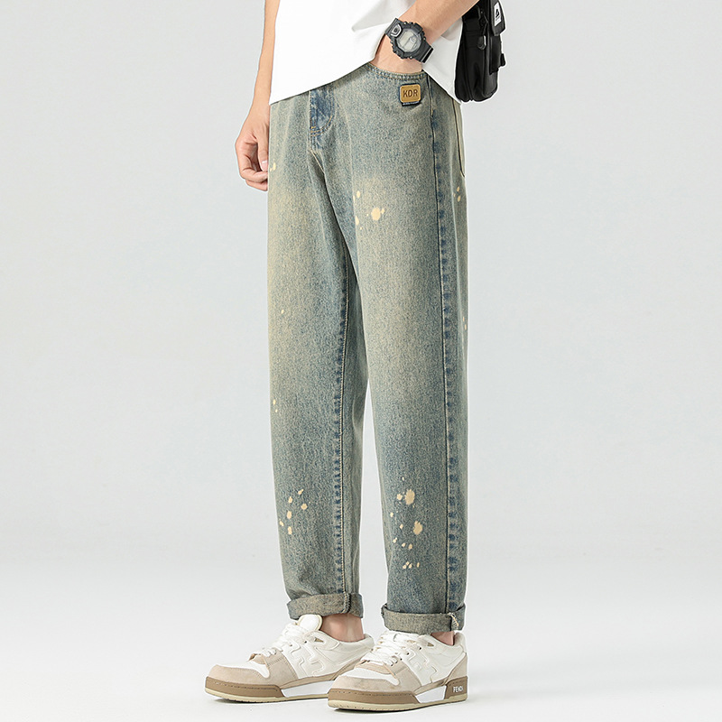 広州のハイエンドのジーパンの男子学生の2025春夏の新型のゆったりしているまっすぐな筒のアメリカの復古のファッションのブランドのカジュアルな長いズボン