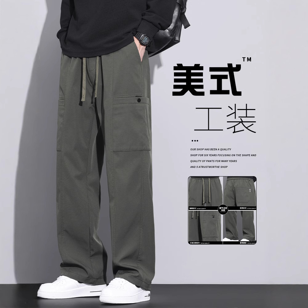 ファッション工装男性春2025新型ファッションブランドゆるいストレートカジュアルパンツ