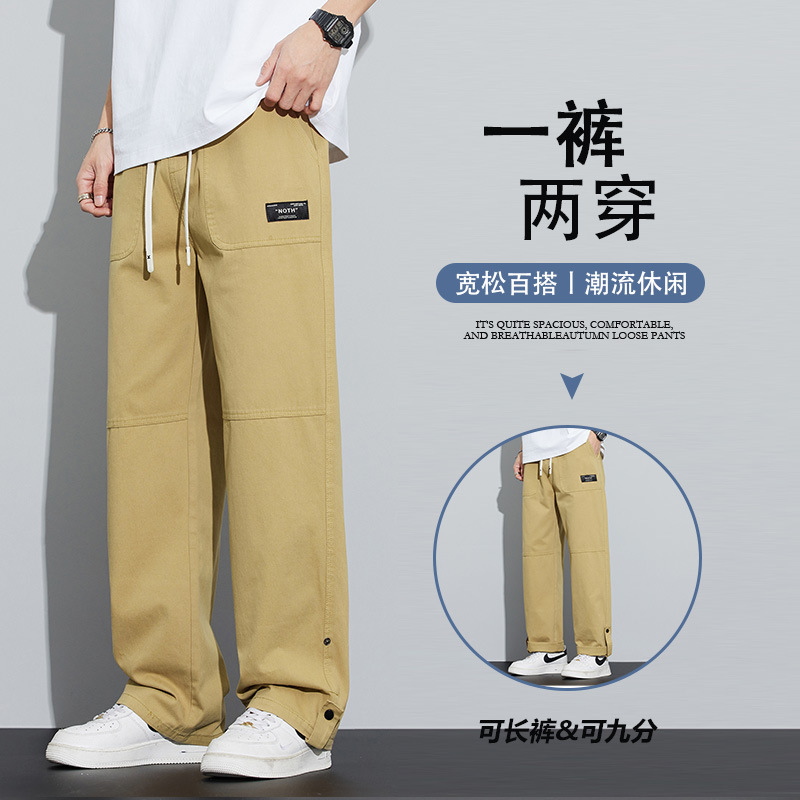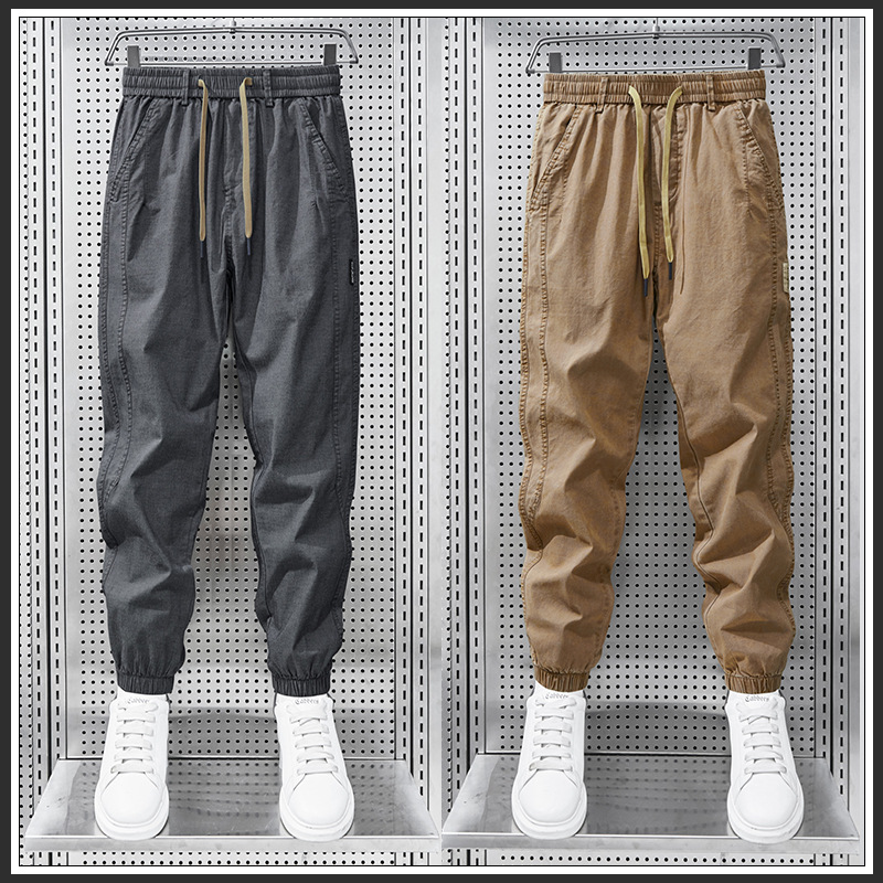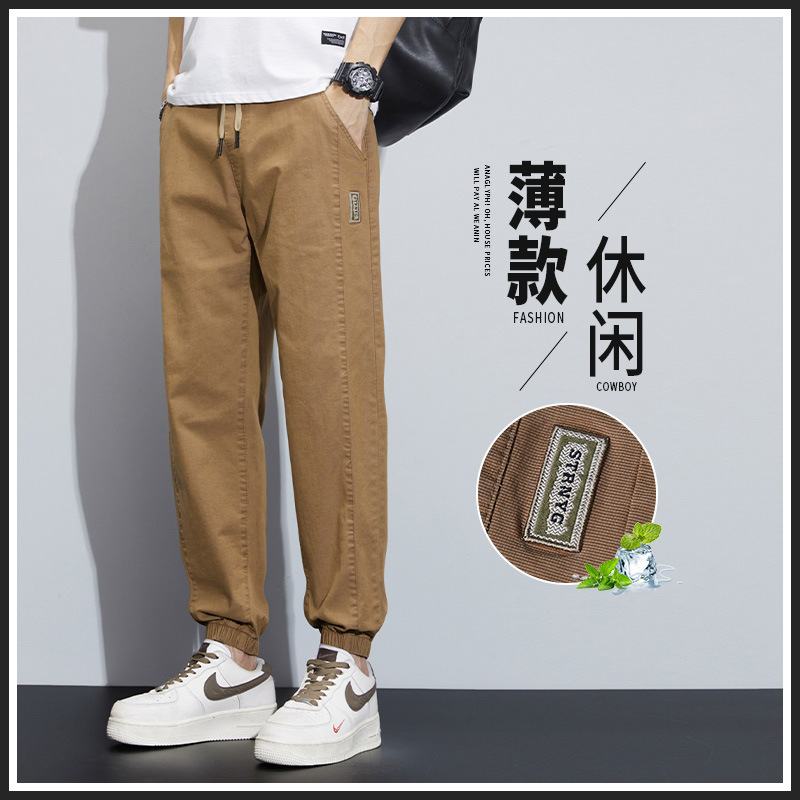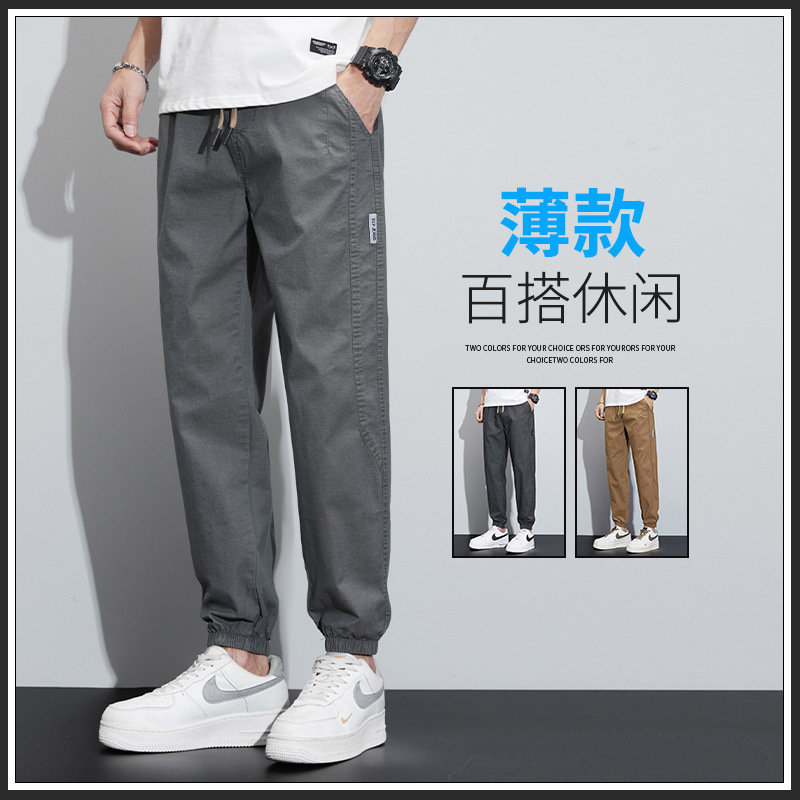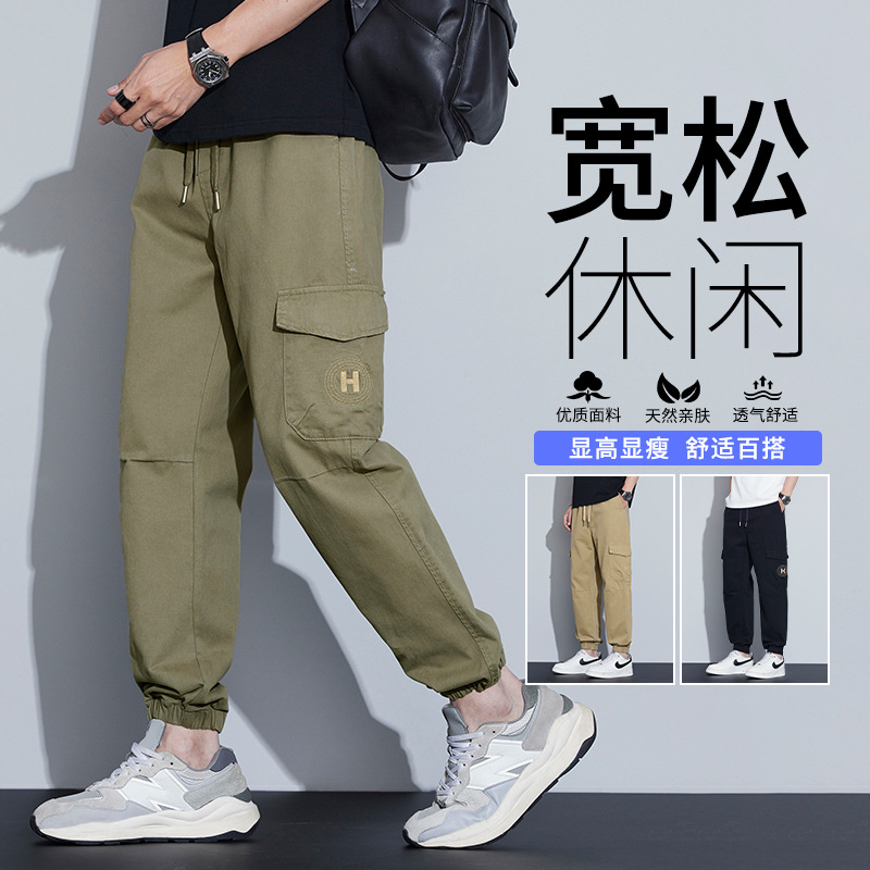 2025ゆるい純綿男ズボン春夏ソフトケース工装突撃ズボン男性束足カジュアル長ズボン潮男金