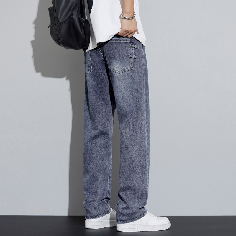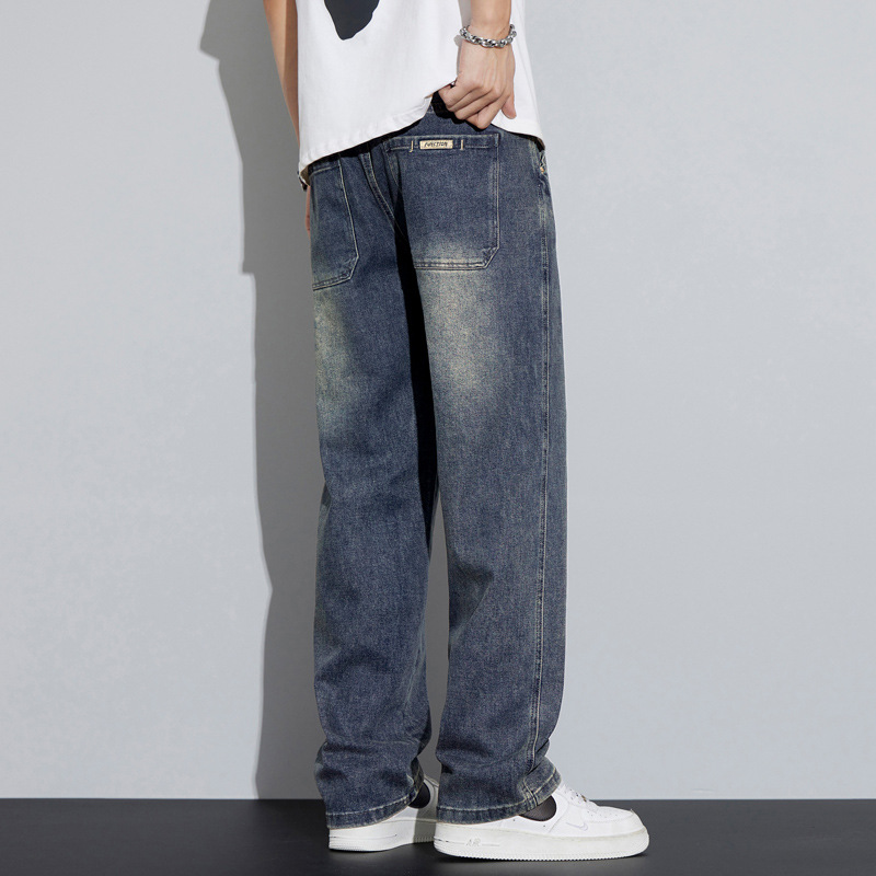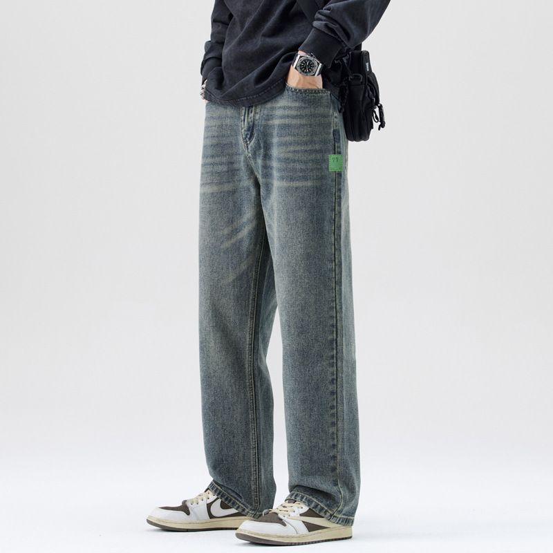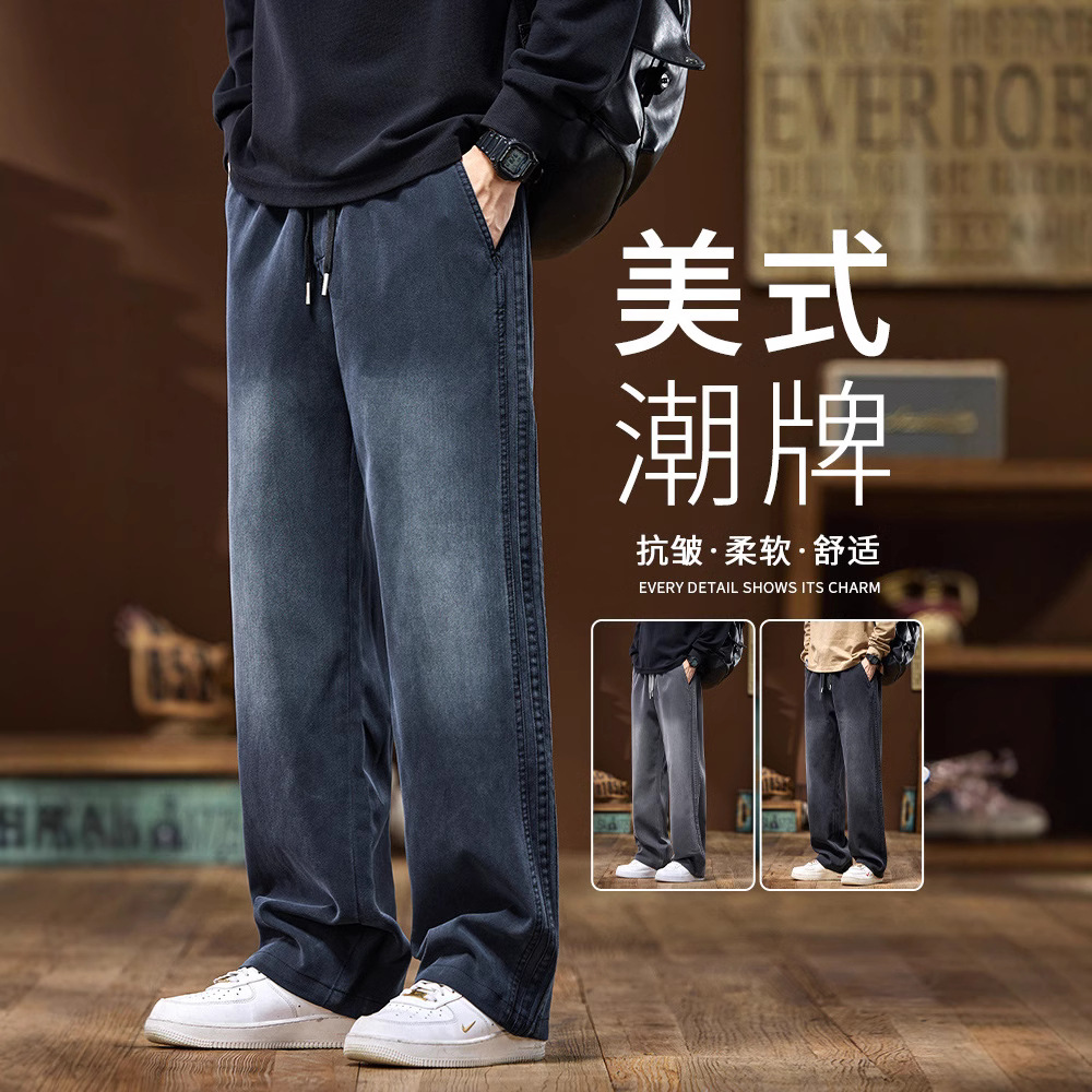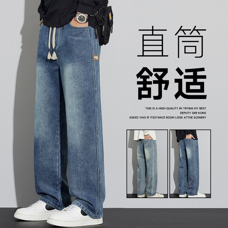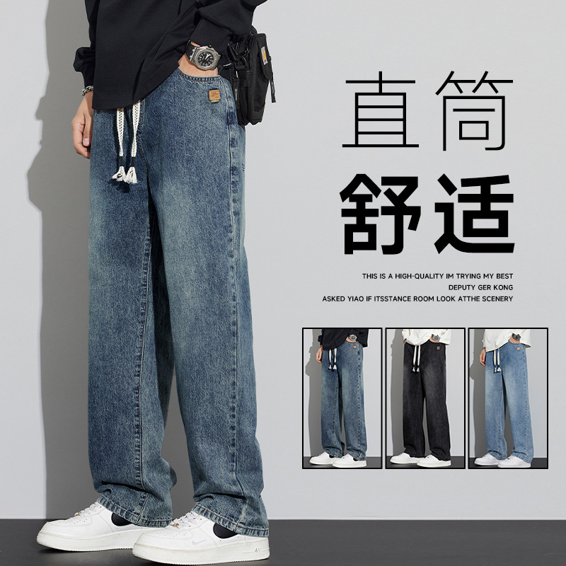 ストレートジーンズ男性春秋ゆるいカジュアルパンツ2025春の新型アメリカの高級弾力ズボン男性