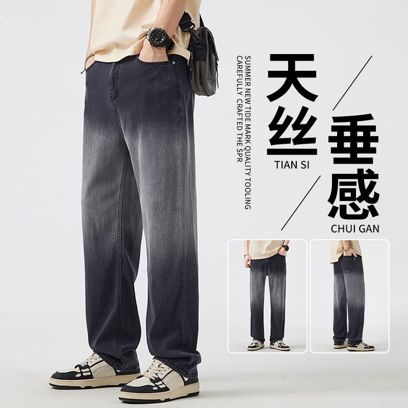 星空のグラデーションのジーパンの男性の春秋2025新型のアメリカのゆったりしているストレートのカジュアルなズボンの男性の潮の札