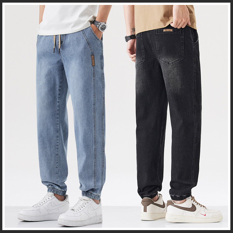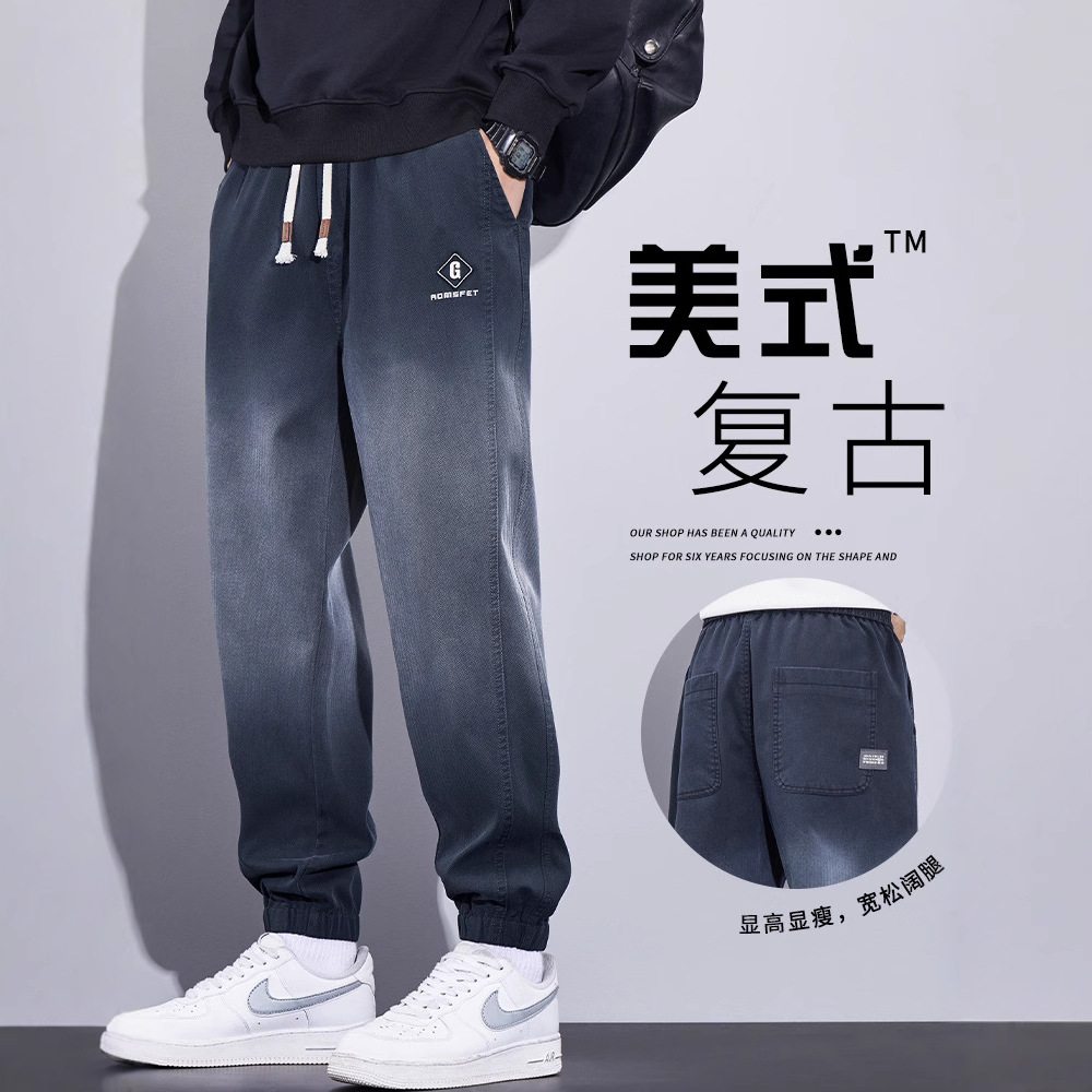 男性用カジュアルパンツ2025春秋新作アメリカングラデーション水洗いデニムハーレン束フットワークロングパンツ男