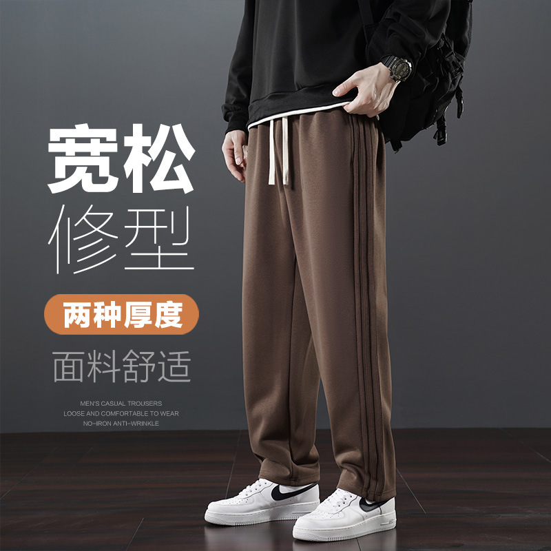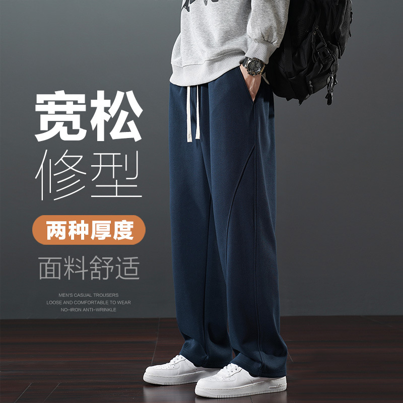 カジュアルパンツ男性春秋潮牌ゆるいストレートスポーツパンツ2024新百合ペンダント感ニットパンツ