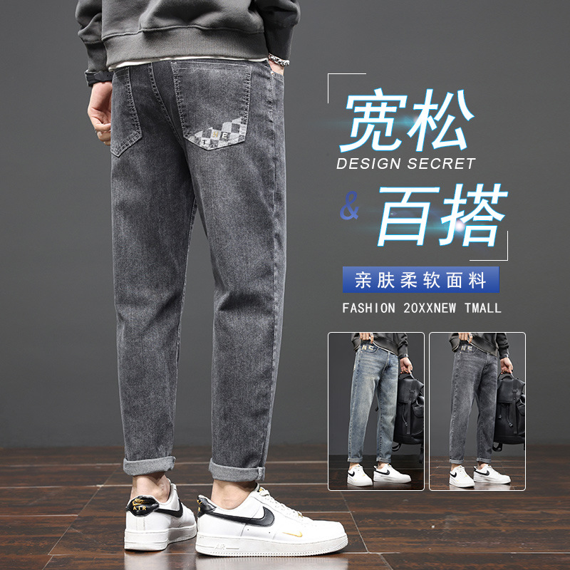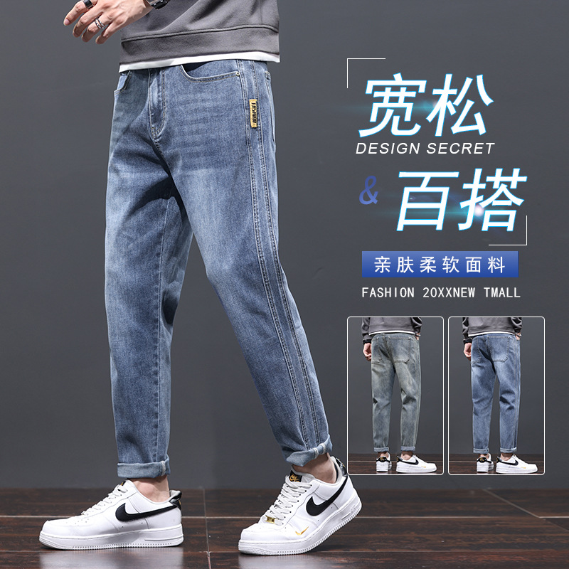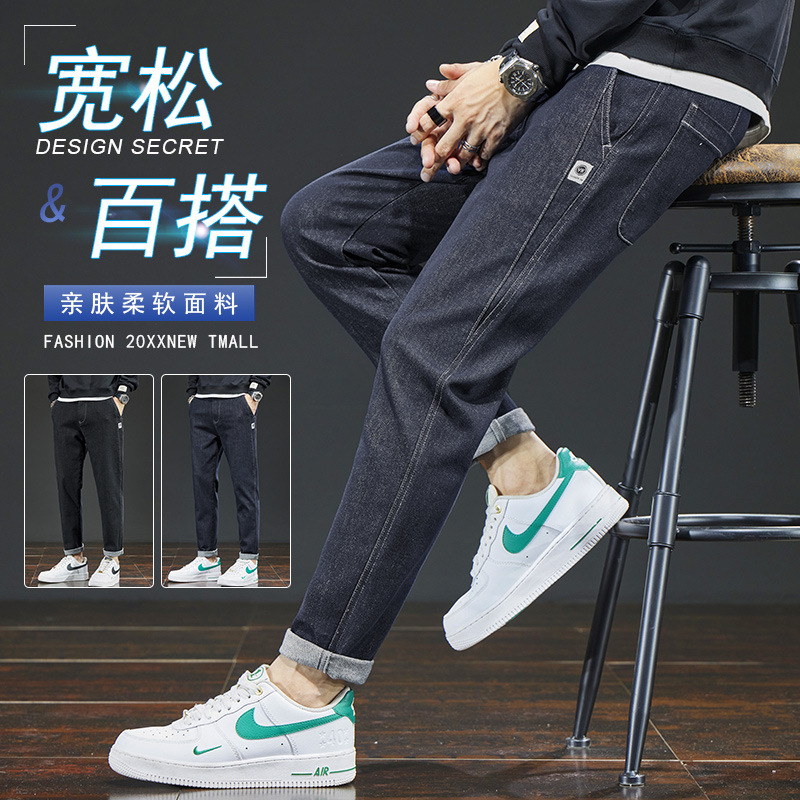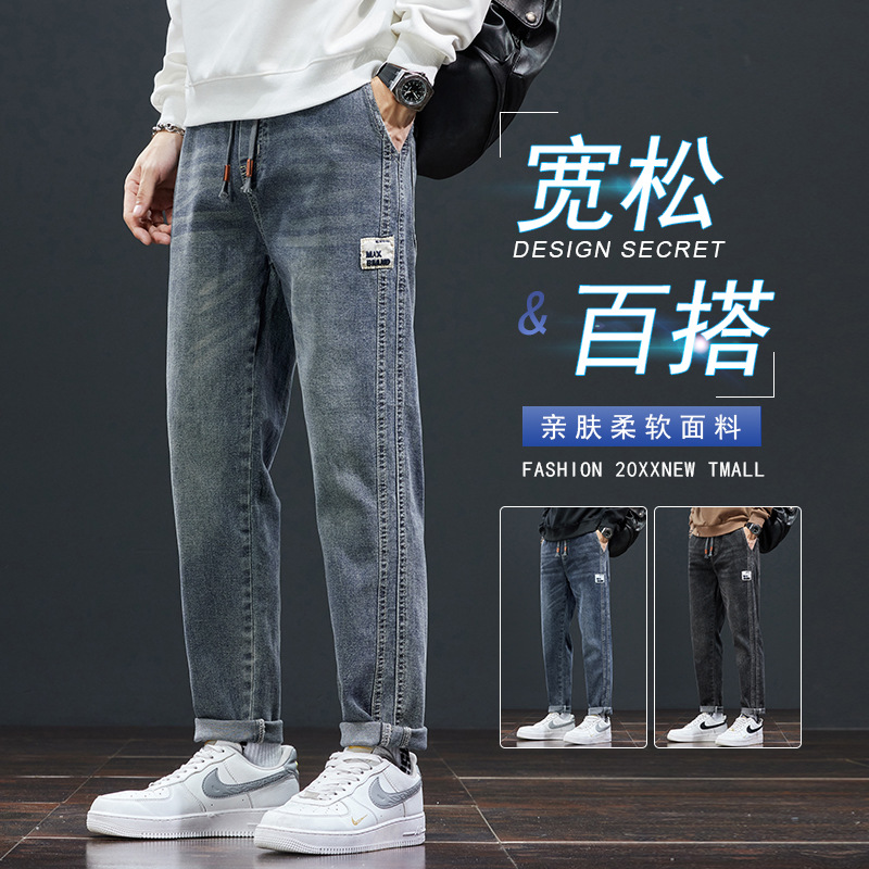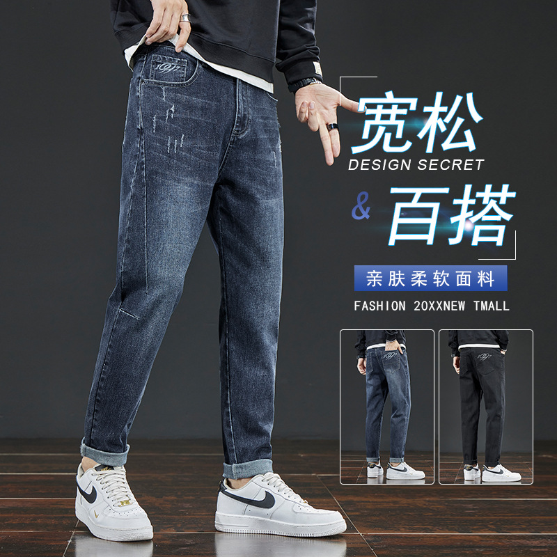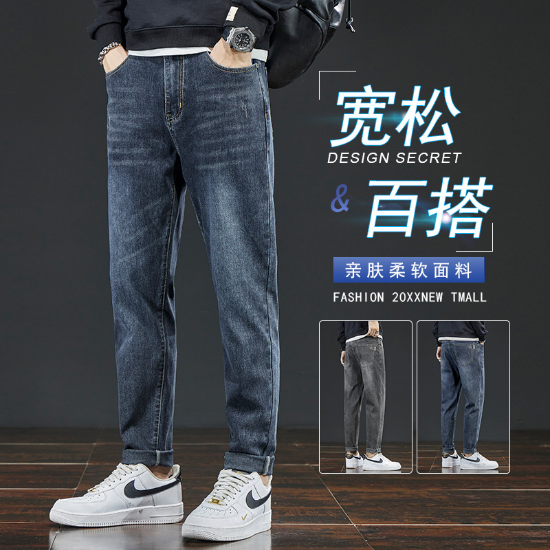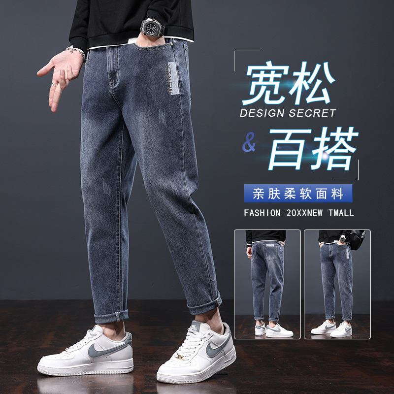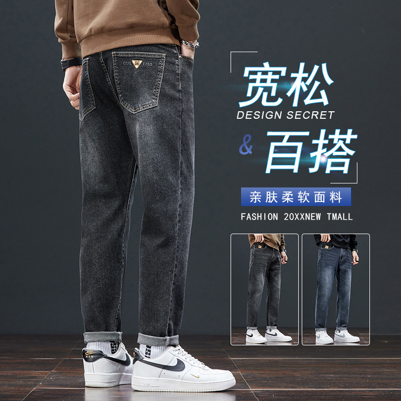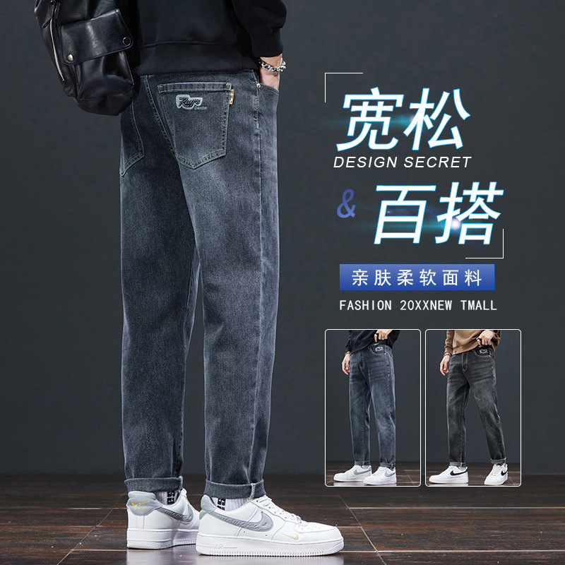 春と秋のストレートジーンズの男性のトレンドは、2024の新しい男性の秋のゆるいハーレムカジュアルなズボンに合わせています