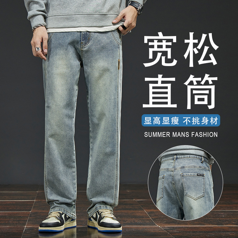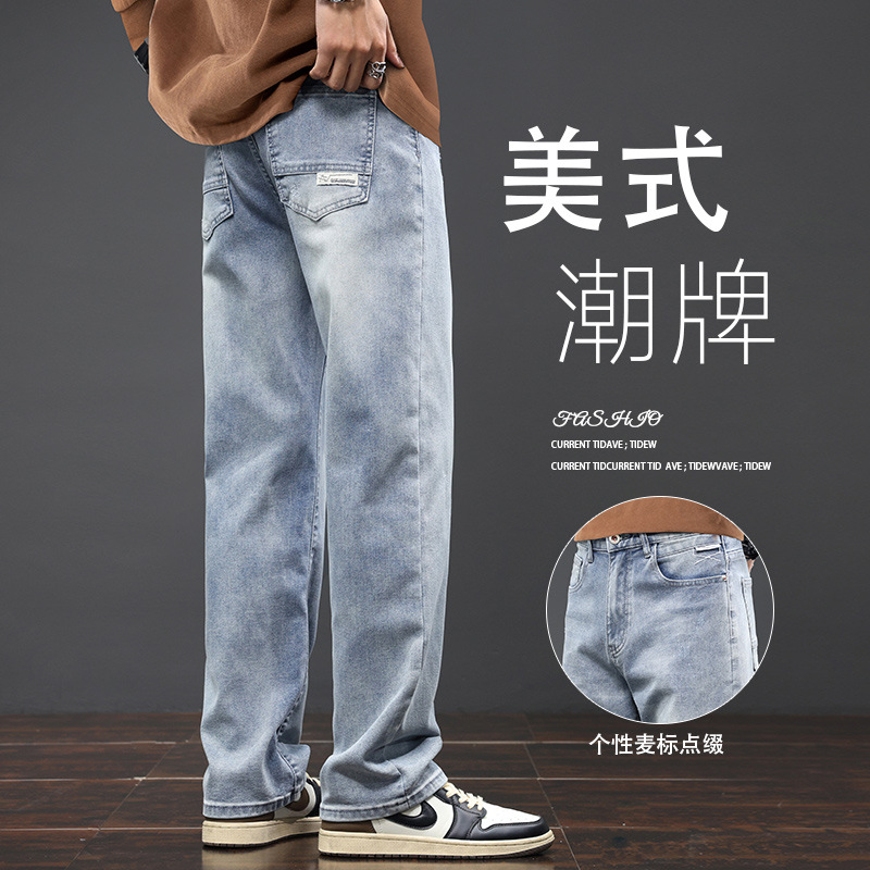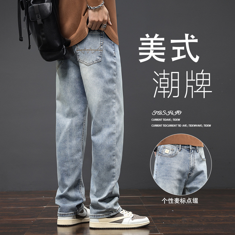 アメリカのストレートジーンズ男性2024秋の新型ファッションブランドのレトロでゆるい弾力性カジュアルなズボン