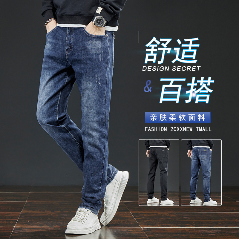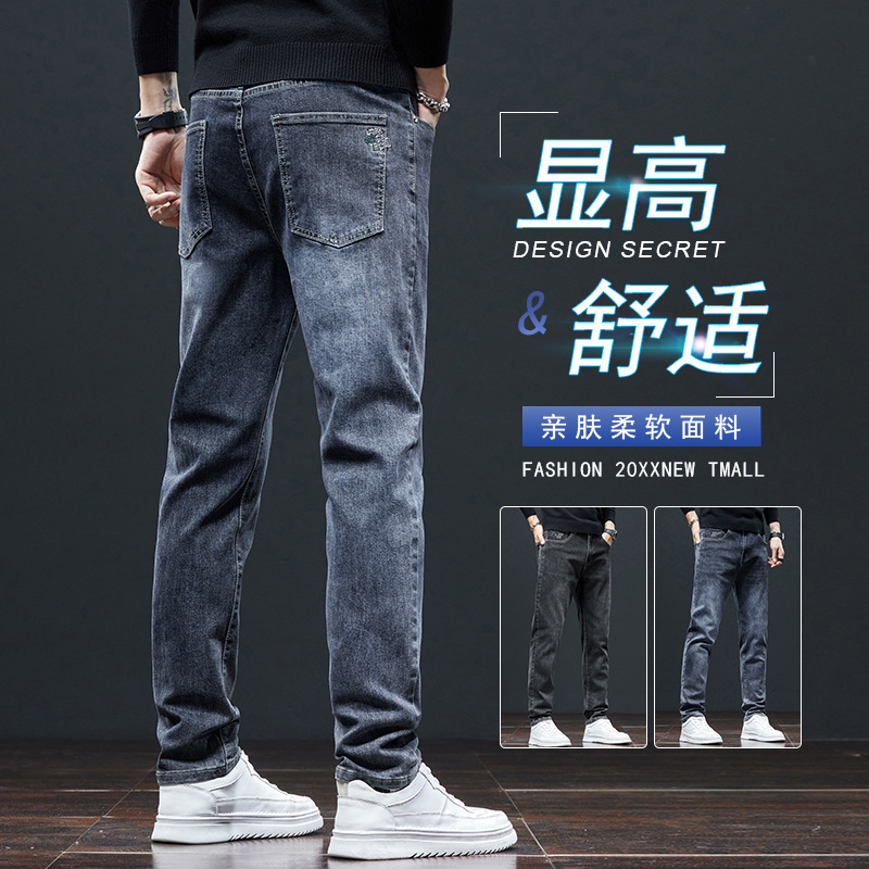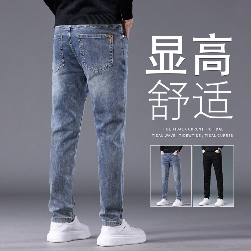 ジーンズの男性のまっすぐな筒の修身の小さい足のズボンの2024年の新型の紳士服の春秋のファッションのブランドのカジュアルなズボンの男性