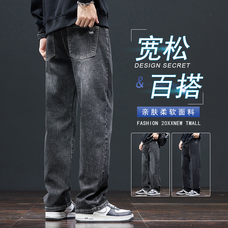 ジーパンの男性の2024春と秋のゆったりしたストレートのズボンのファッションのカジュアルな組み合わせはやせているズボンのメンズを現します。