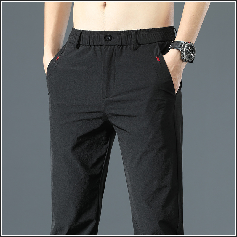 2025夏の薄い男性のズボンのカジュアルなズボンの氷の糸の速乾のスポーツのズボンのまっすぐな筒の弾力のスーツのズボンの男性のズボン