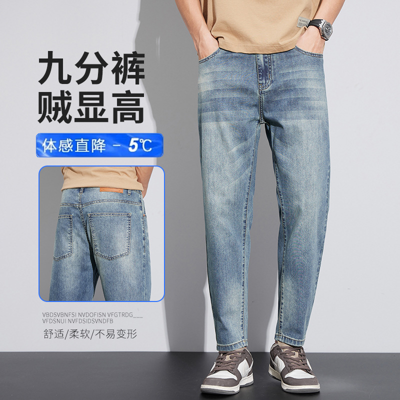 夏薄手カジュアルレトロ9点ジーンズメンズマイクロハーレムパンツテーパードスモールストレート9点パンツメンズトレンディ