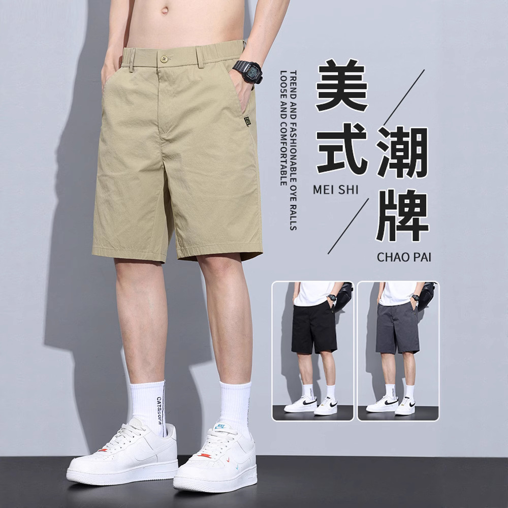 アイスシルクショーツメンズ夏薄手ゆったりカジュアルビジネスミドルパンツアウター速乾5点作業服スーツパンツトレンディブランド