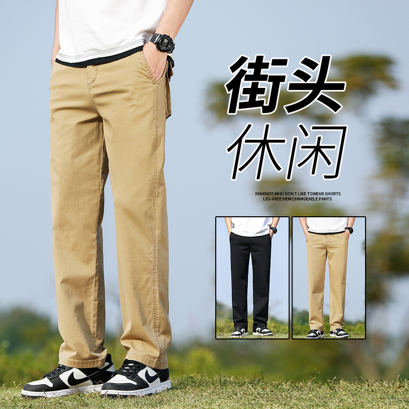 夏の薄いカジュアルパンツ男性綿綿のゆるいストレートパンツ2024の新しいファッションブランドの涼しさ感のあるワイドパンツ