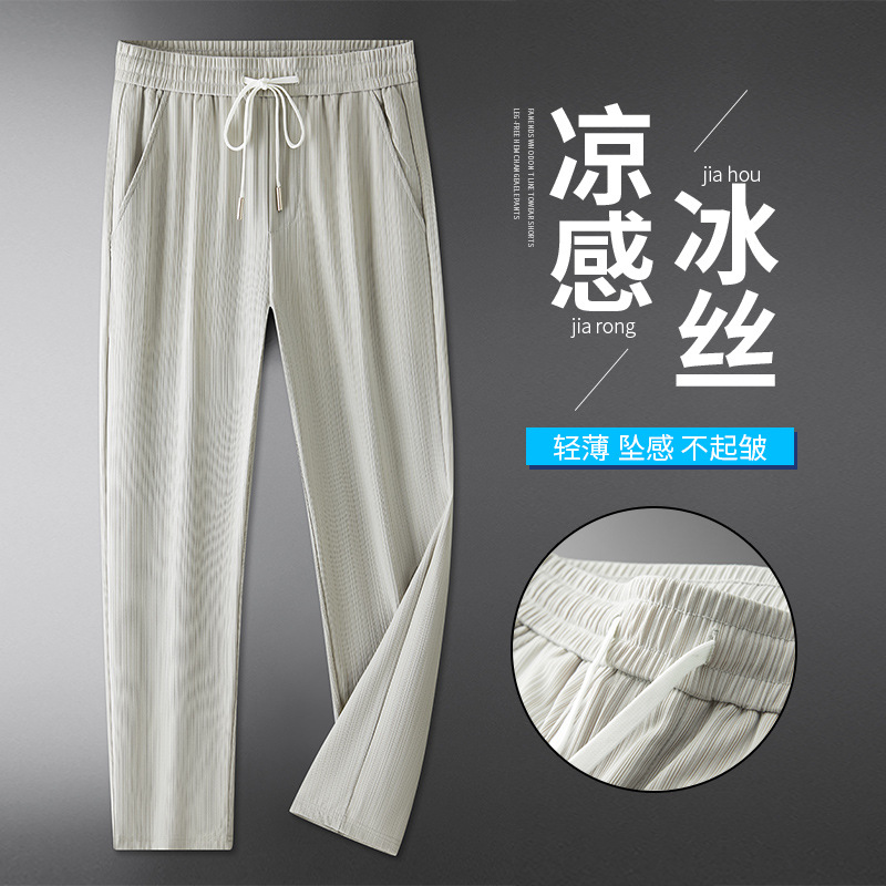 天糸カジュアルパンツ男性夏の薄手のゆるいストレートズボン氷糸通気運動ズボン男