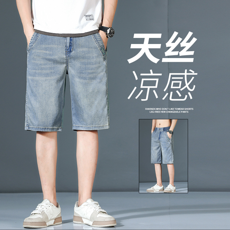 夏の超薄デニムショートパンツ男性のファッションブランドがゆったりしています。