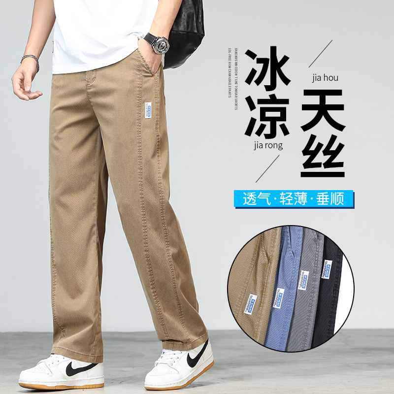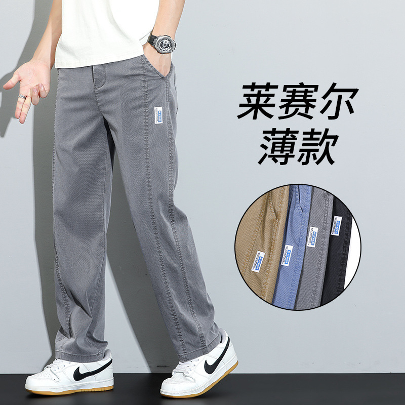ライゼル天糸カジュアルパンツ男性夏の薄手のゆるいストレートパンツファッショントレンドカジュアル長ズボン