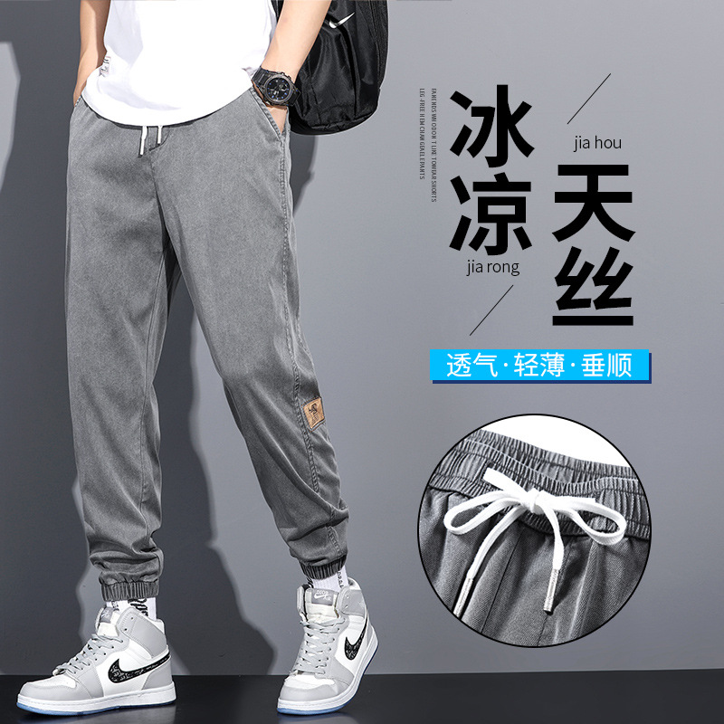 天糸カジュアルズボン男性2024夏の薄いタイプのゆるい足の氷糸ライゼル九分トレンドパンツ