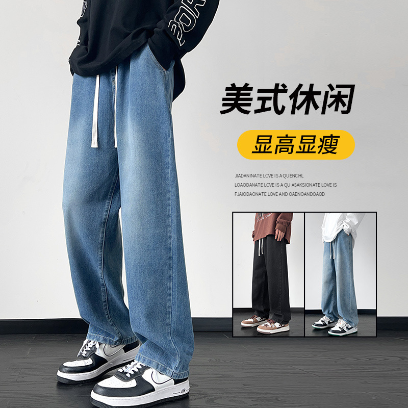 2024アメリカのファッションブランドの春のストレートジーンズの男性青少年の春秋モデルのゆったりとしたカジュアルな感じのワイドパンツ
