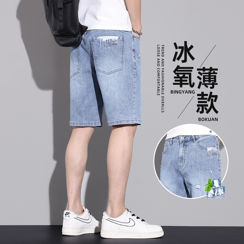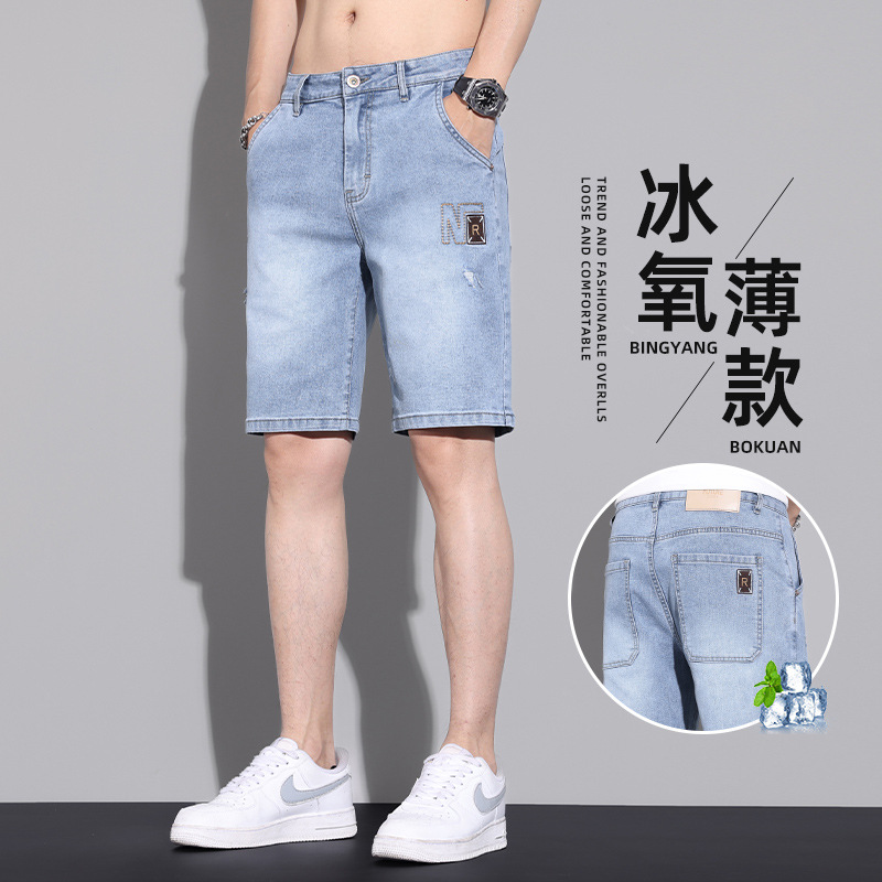 夏の超薄デニムショートパンツ男性のファッションブランドがゆったりしています。