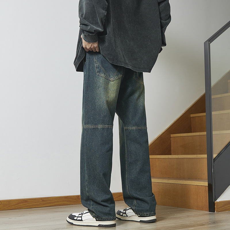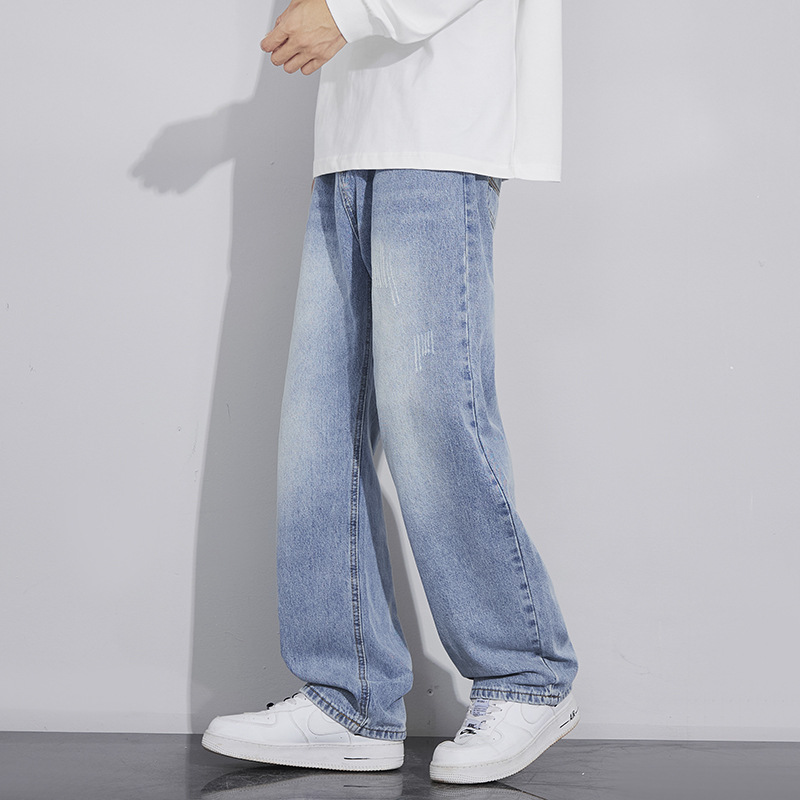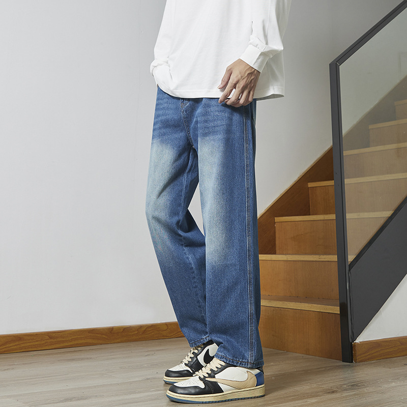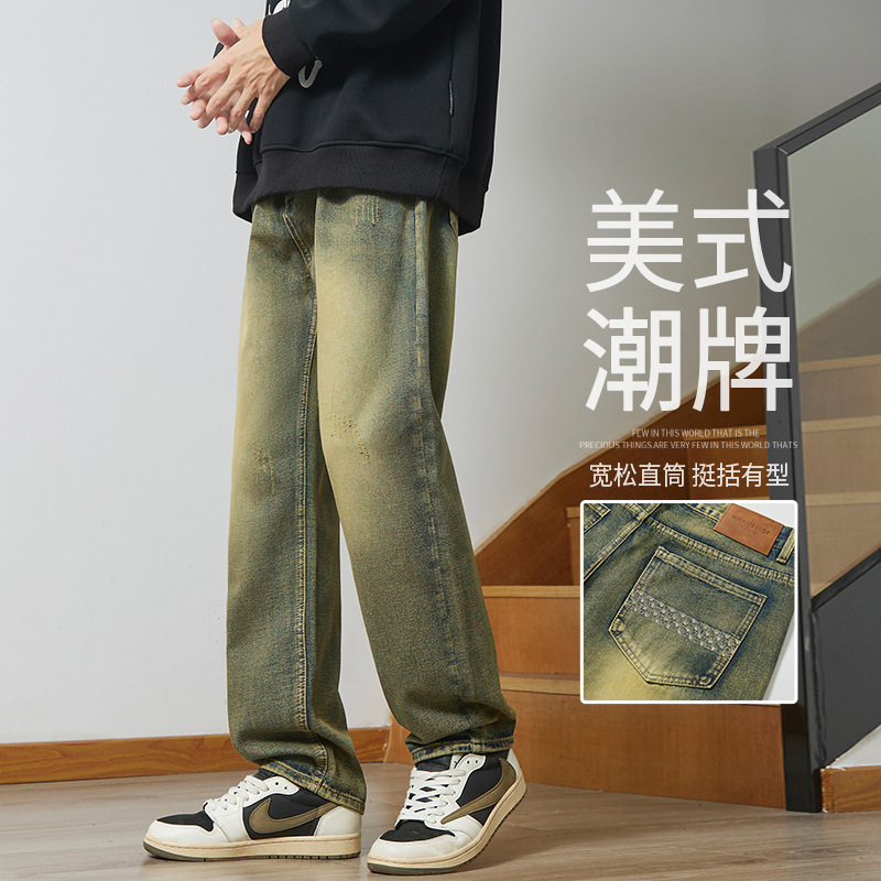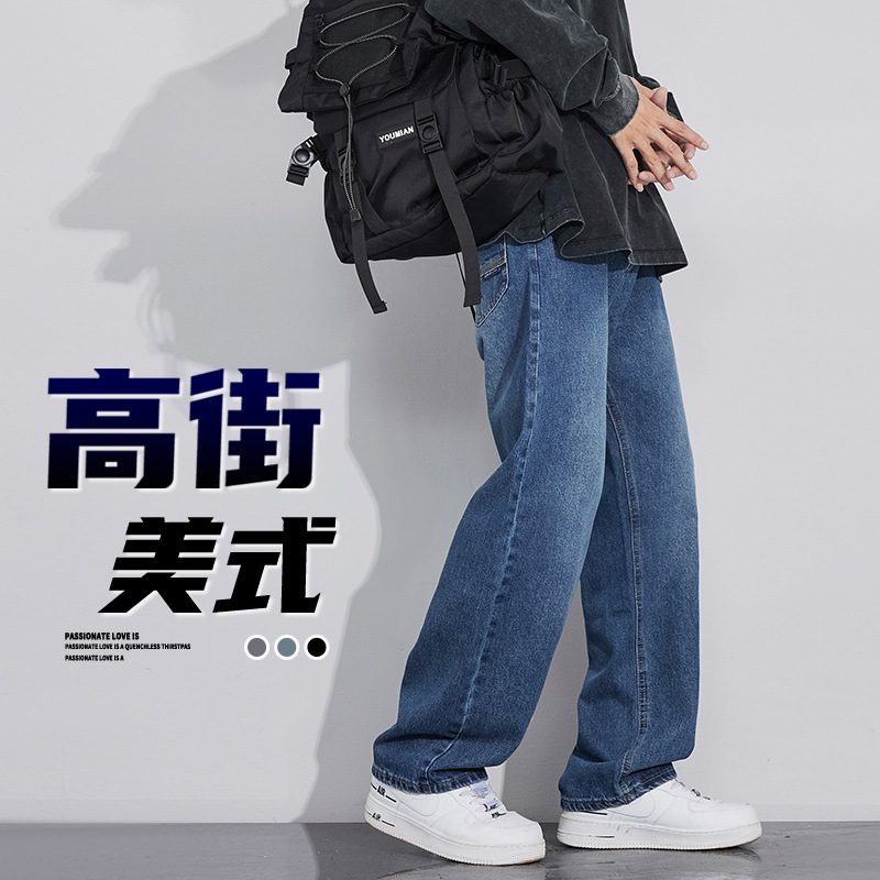 水洗いレトロ青ジーパン男夏アメリカゆるいファッションカジュアル長ズボン高街潮牌直筒ズボン男