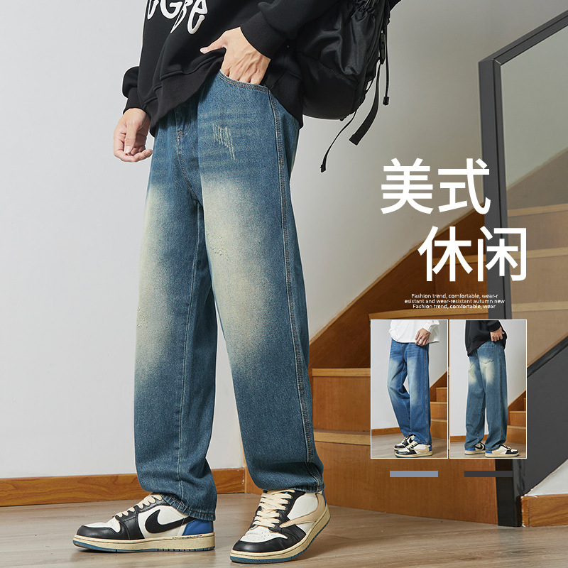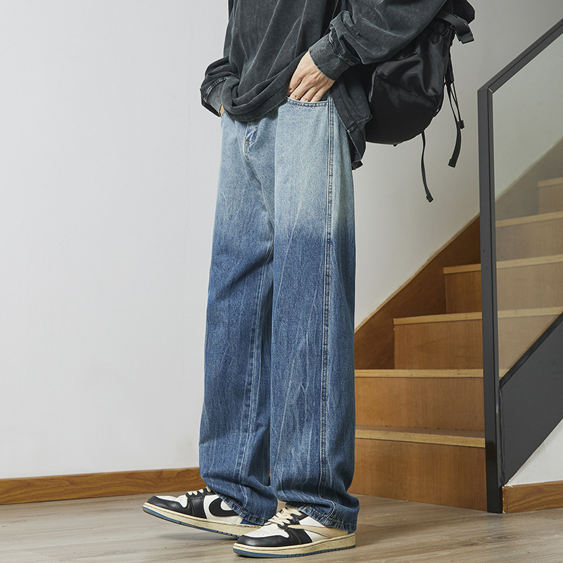 グラデーションジーンズ男子2024春秋ゆるいストレートパンツアメリカ高街カジュアル長ズボントレンド