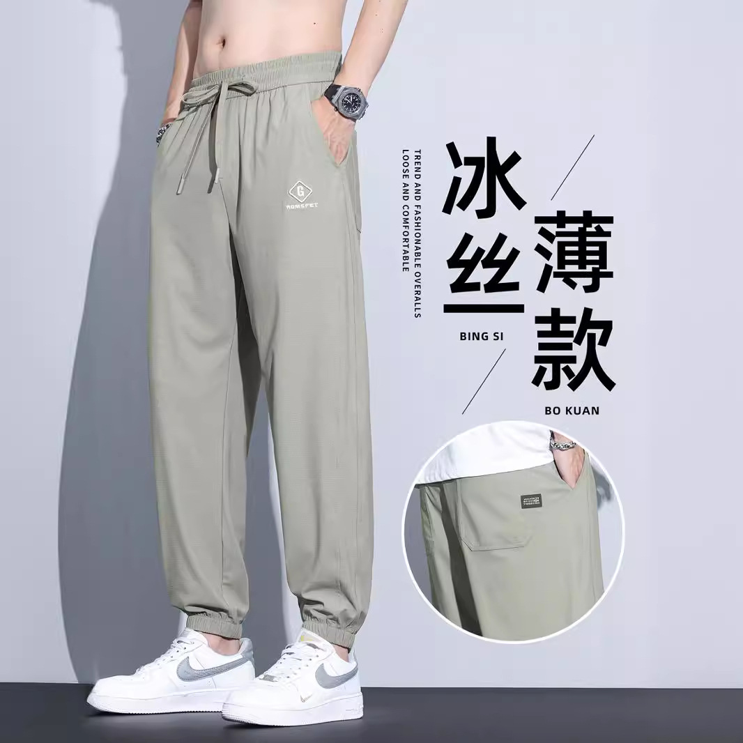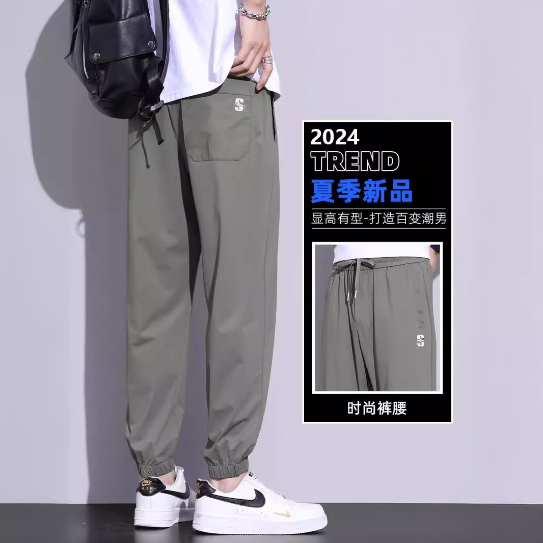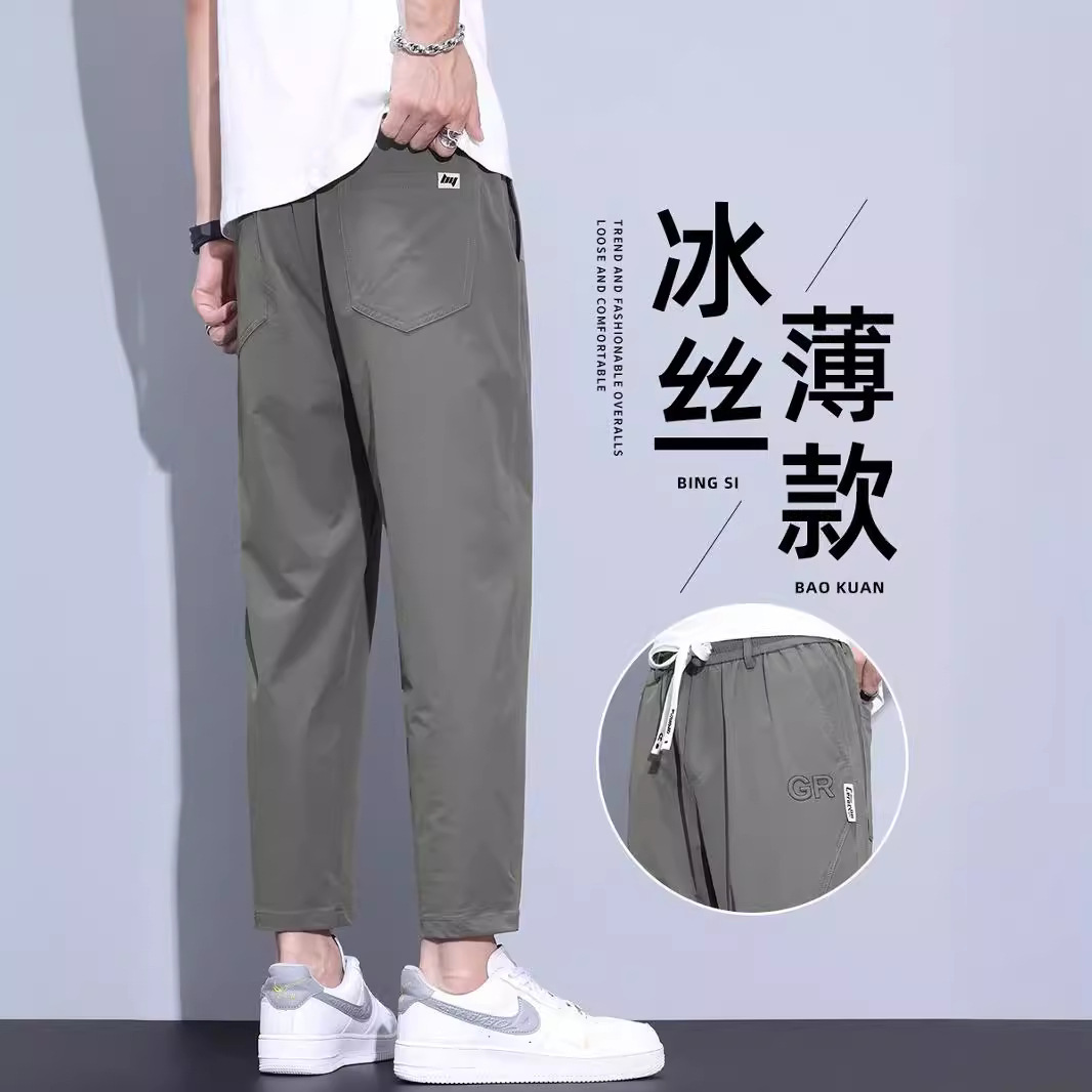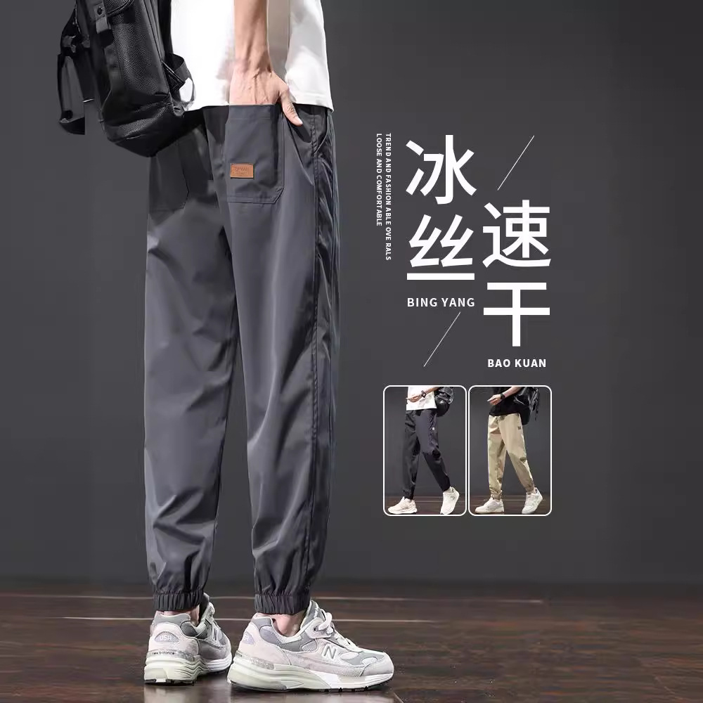 氷糸ズボン男性春秋潮牌ゆるい束足運動速乾九分カジュアルパンツ男性2024夏薄手
