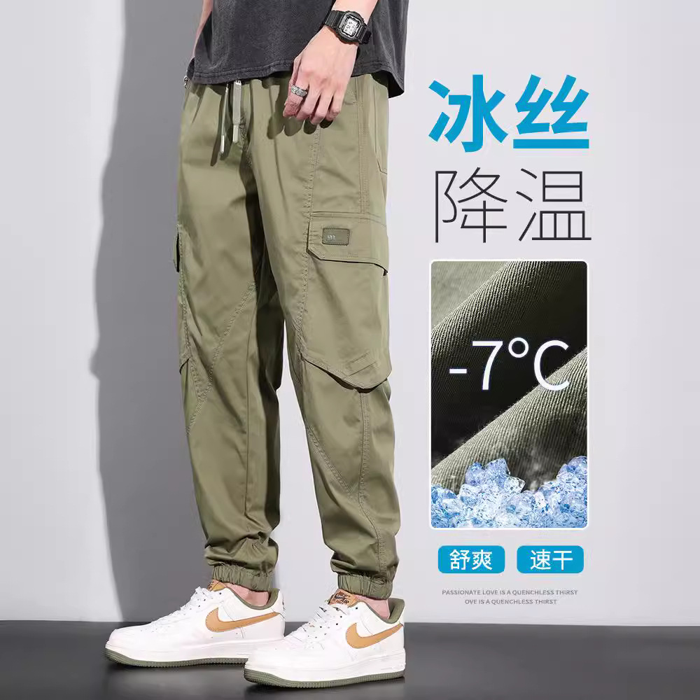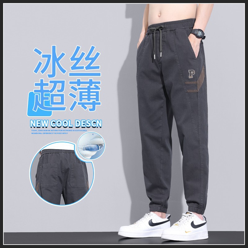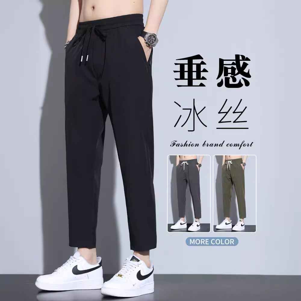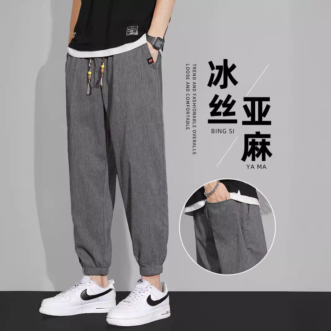 氷糸ズボン男性春秋潮牌ゆるい束足運動速乾九分カジュアルパンツ男性2024夏薄手