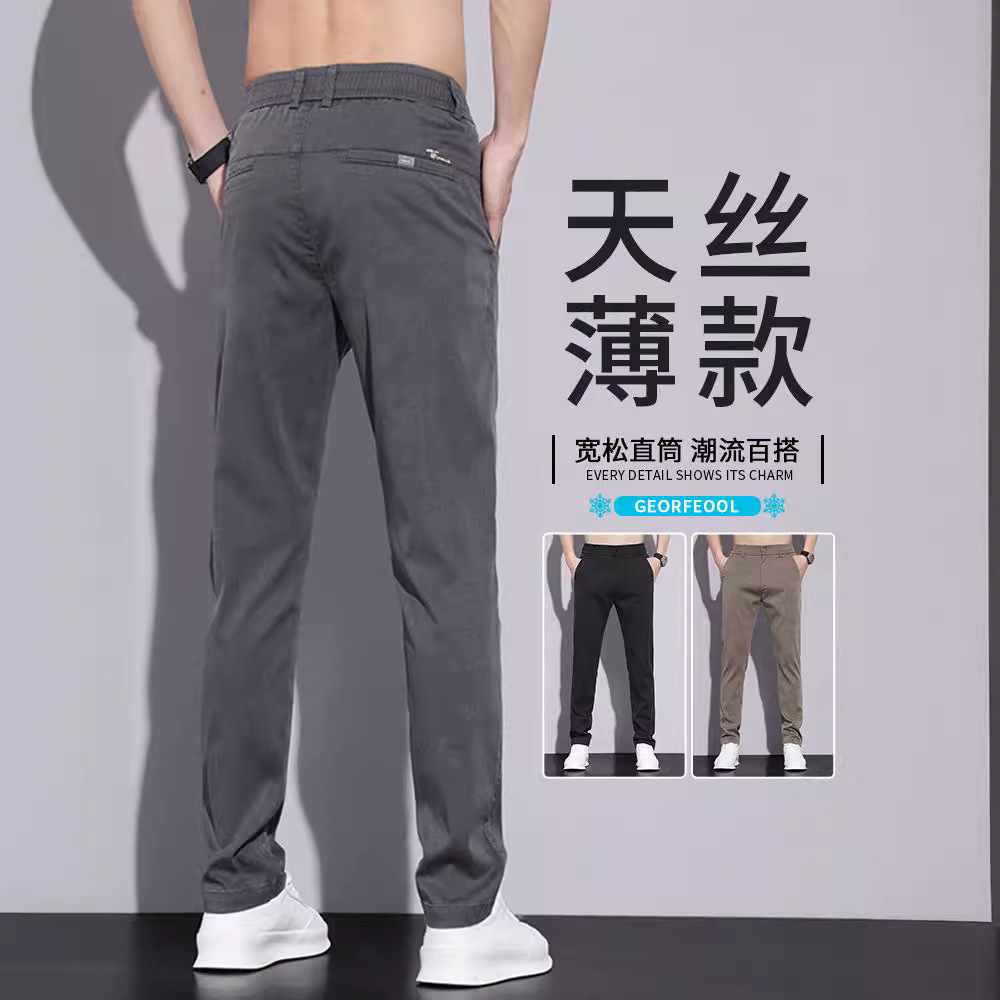 天糸カジュアルパンツ男性夏の薄手のゆるいストレートファッション