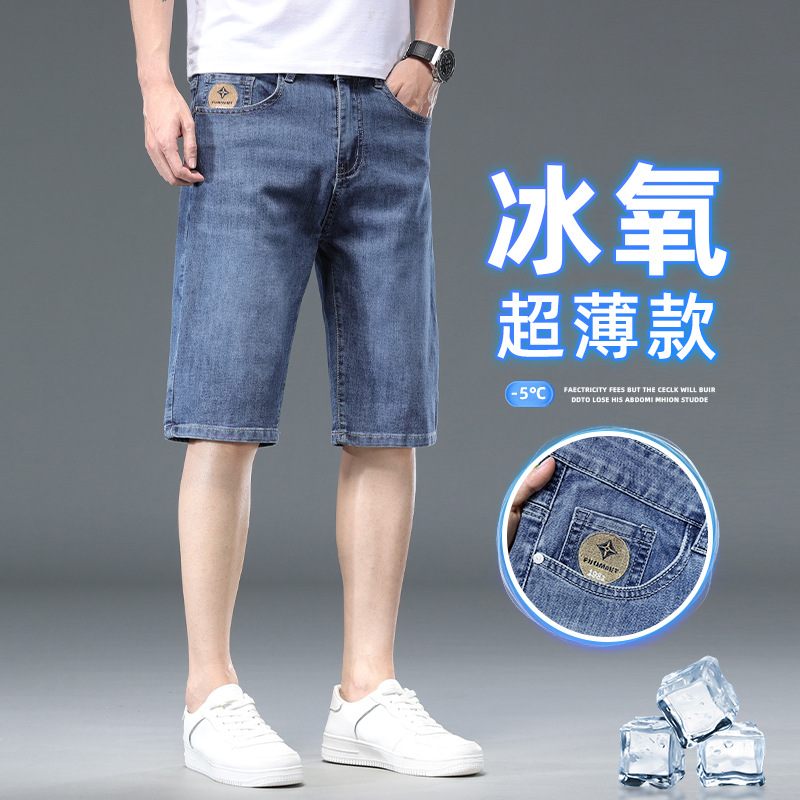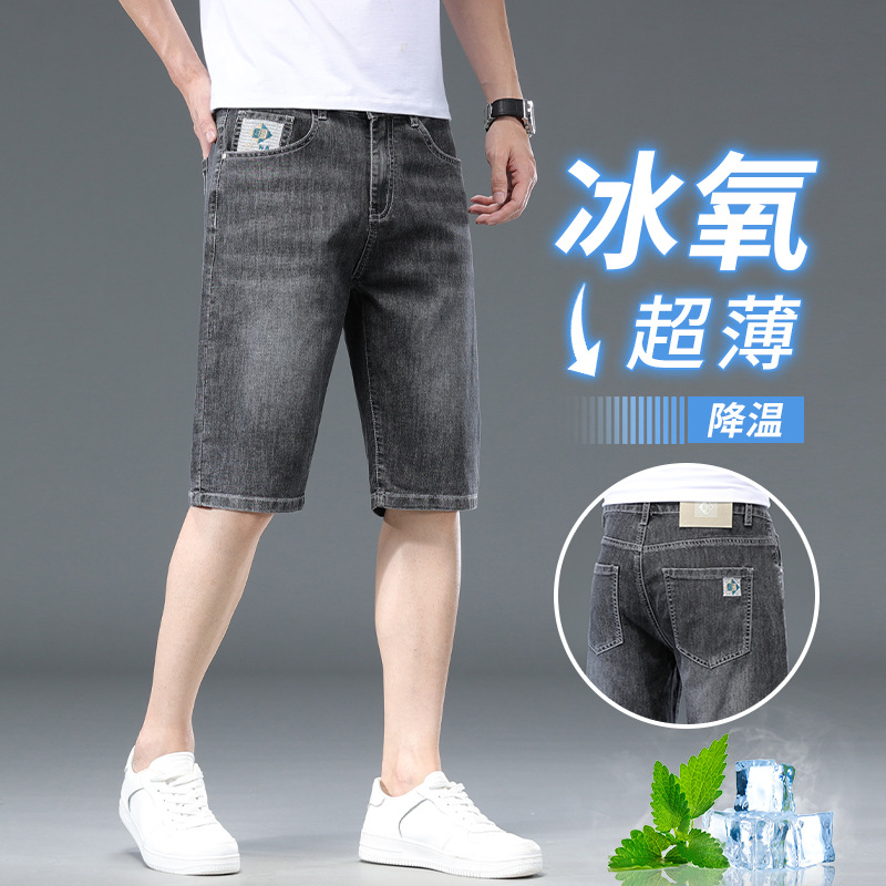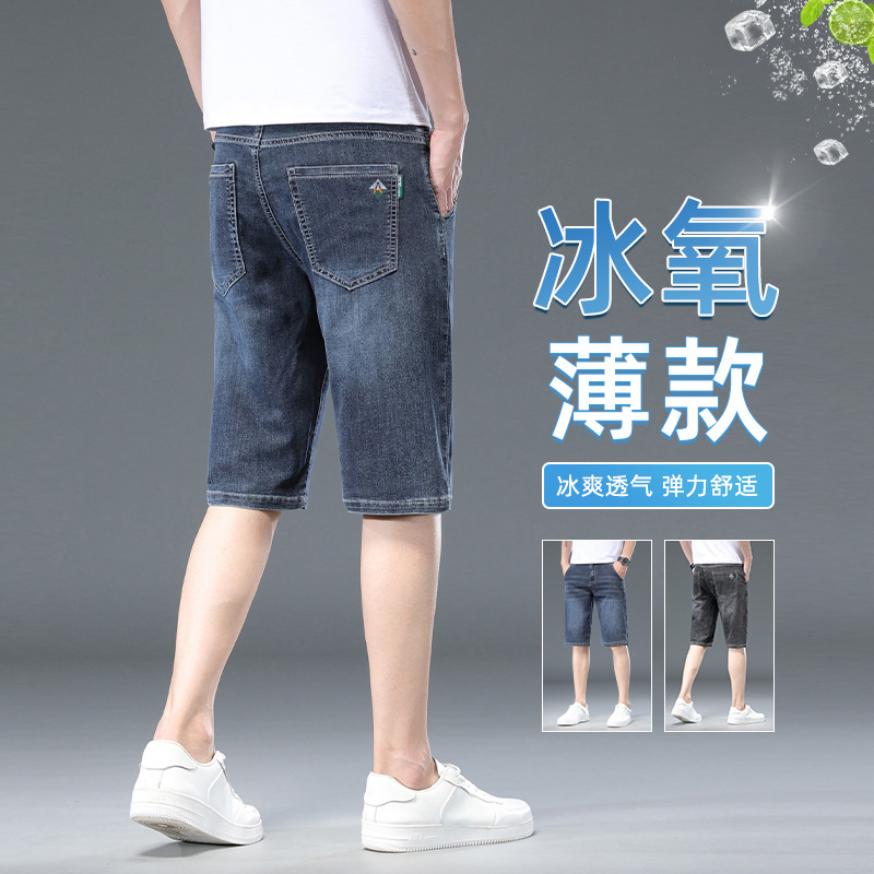 五分デニム半ズボン男性夏のゆるいストレート弾力外着カジュアルパンツ2024新型男性5分ズボン