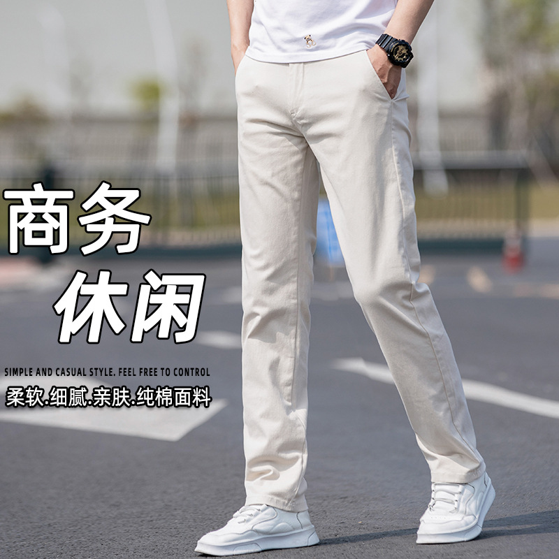 春夏の高級純綿カジュアルパンツ男性2024新型ビジネスズボンの弾力性がゆるいストレート男性長ズボン