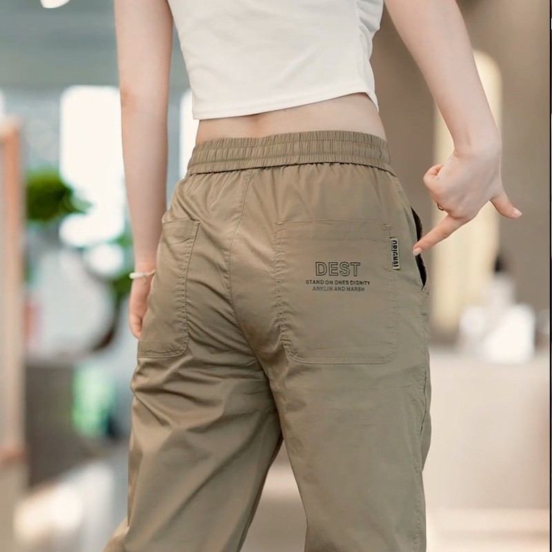 2024工装氷糸カジュアルズボン男性ゆるい束足夏の薄いタイプの速乾ズボンの新しいスポーツの9分のズボン