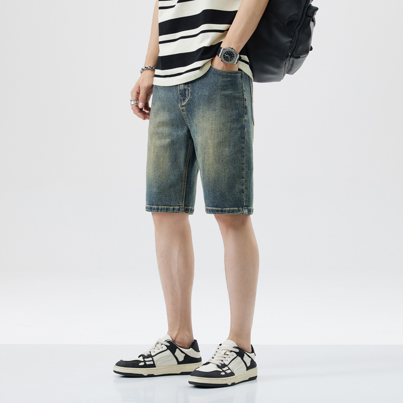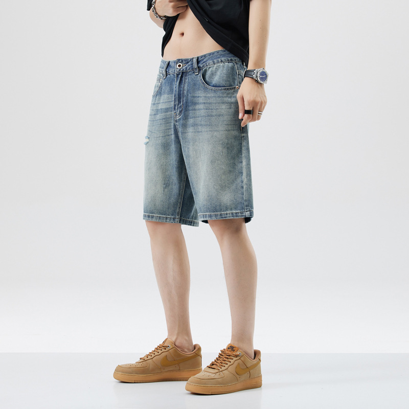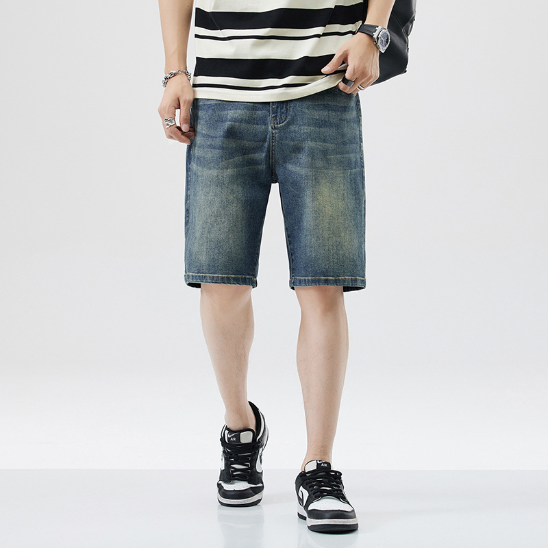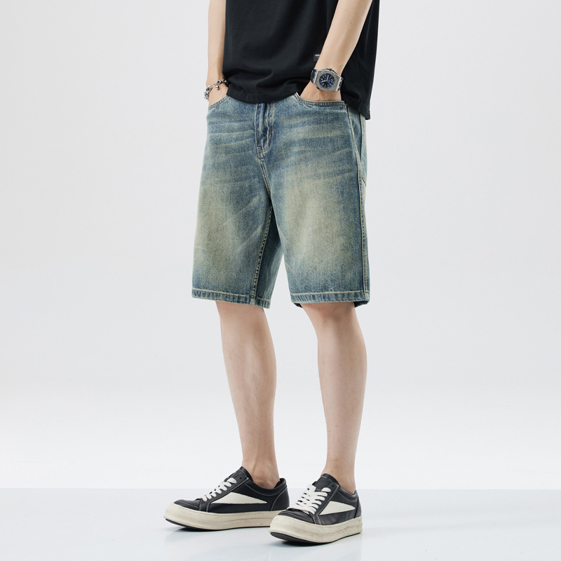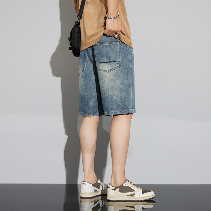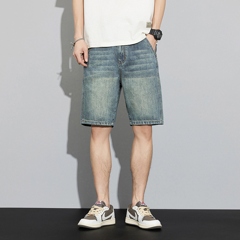 レトロなデニムショートパンツ男性5分夏の薄い氷糸2023潮牌アメリカのゆるいカジュアル5分パンツ