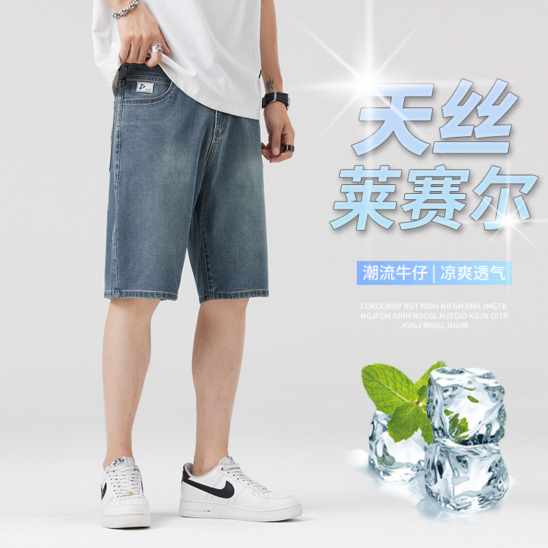 氷糸デニムショートパンツ男性夏の薄手2024新ゆるいストレート5分カジュアルな天糸五分パンツ