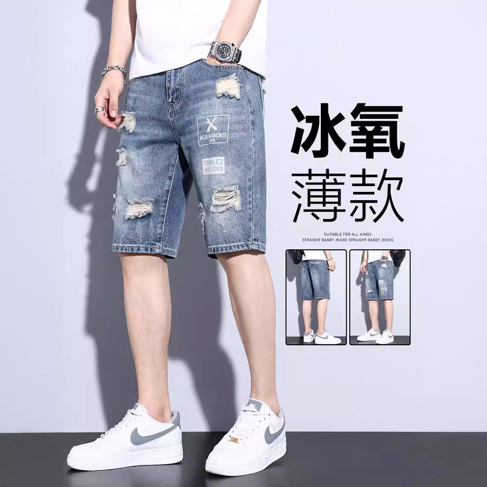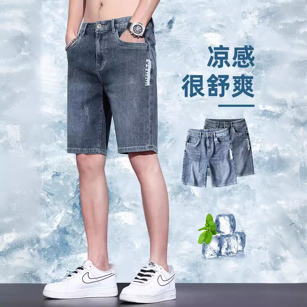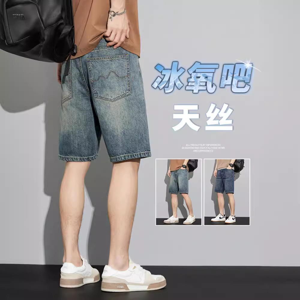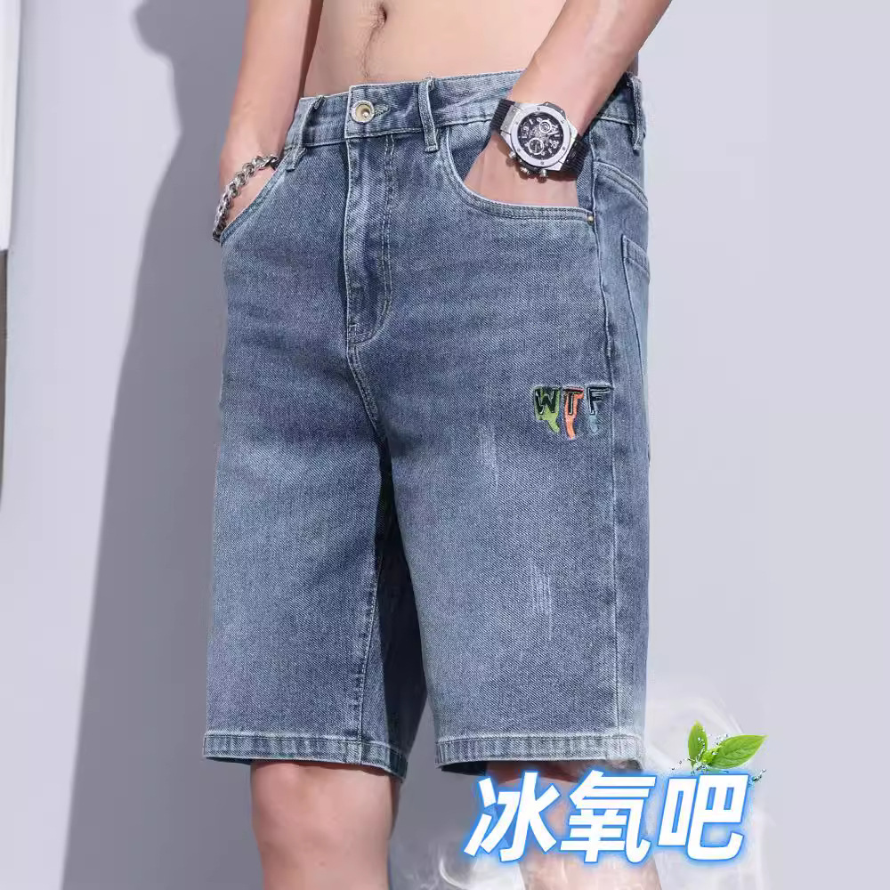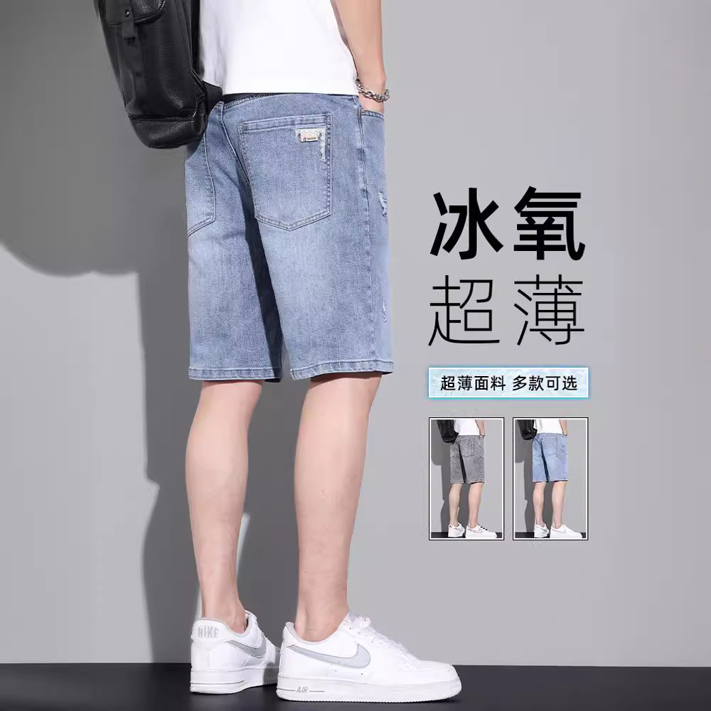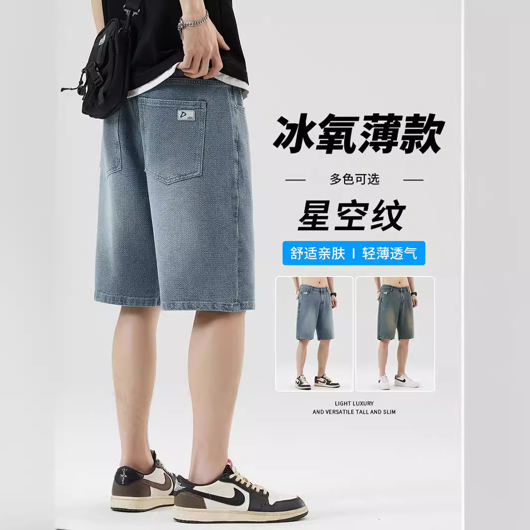 夏の超薄デニムショートパンツ男性ゆるい五分ズボン2024新型氷酸素通気明るいカジュアルパンツ