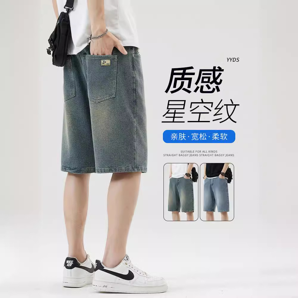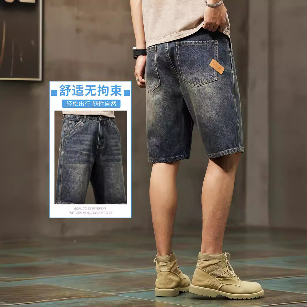 レトロなデニムショートパンツ男性5分夏の薄い氷糸2023潮牌アメリカのゆるいカジュアル5分パンツ