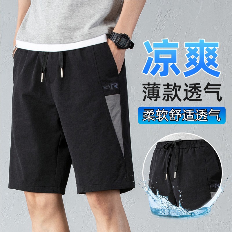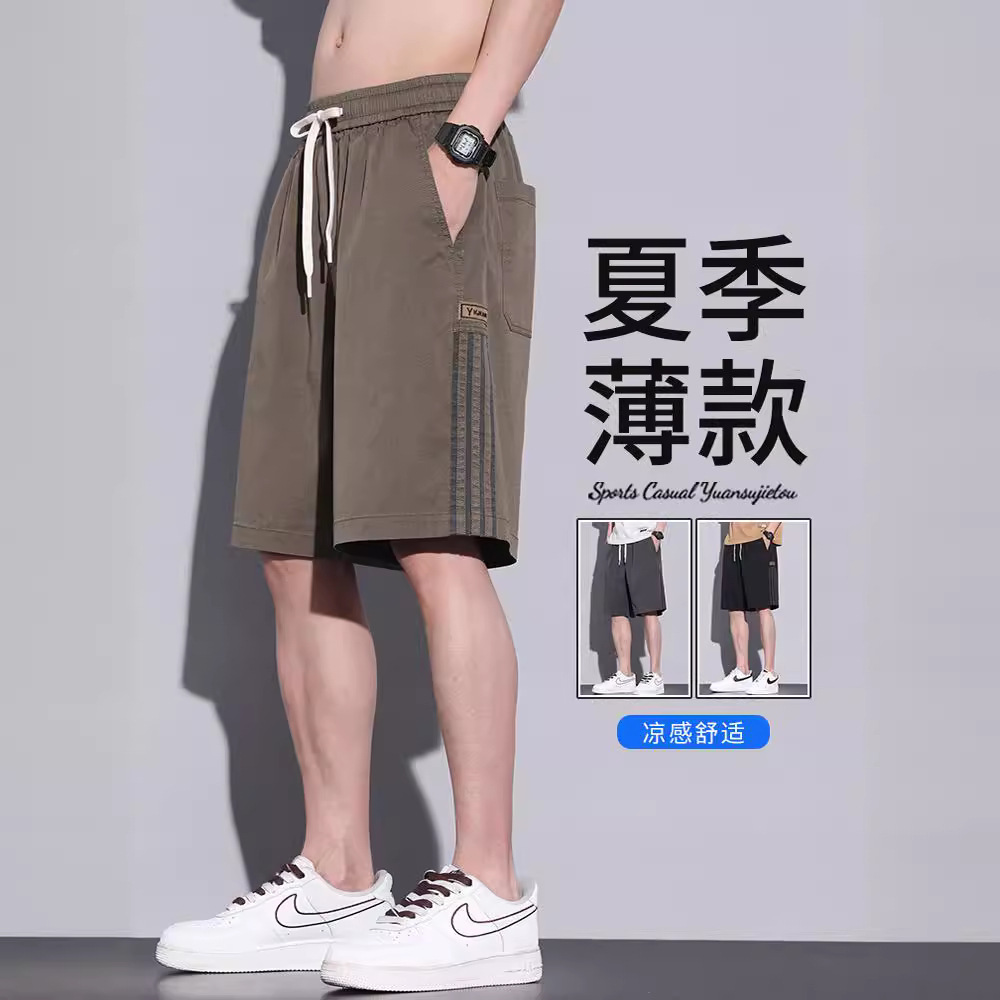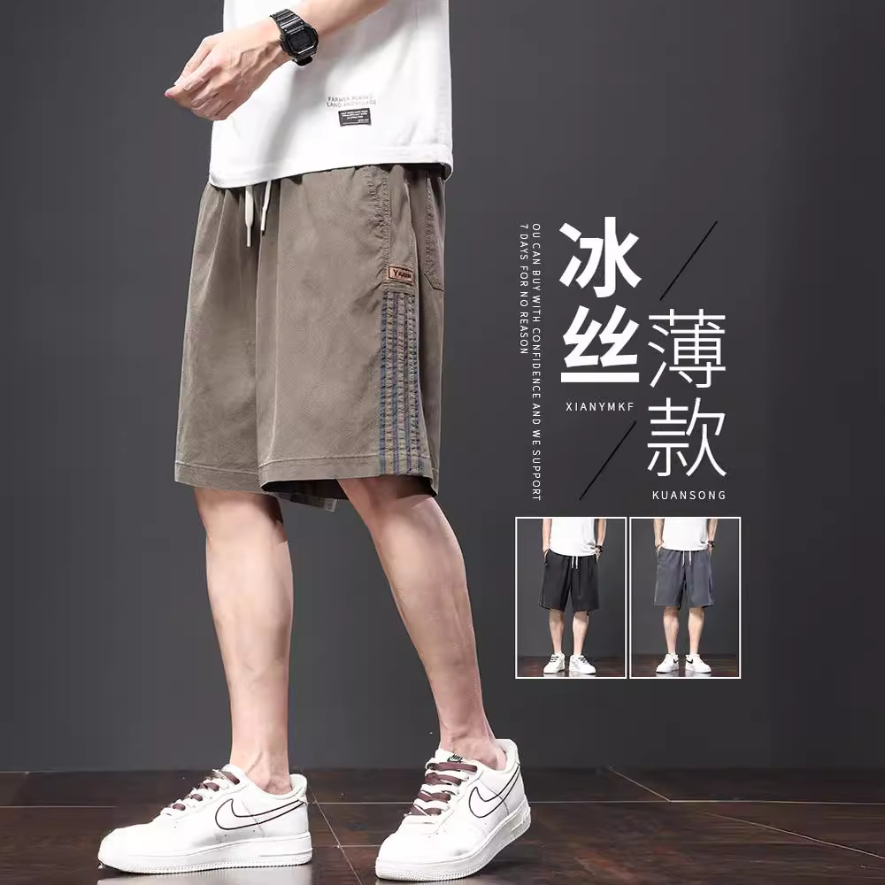 2024新型半ズボン男性夏の薄手スポーツ中ズボンカジュアルゆるい潮牌半ズボン男性用氷糸五分ズボン