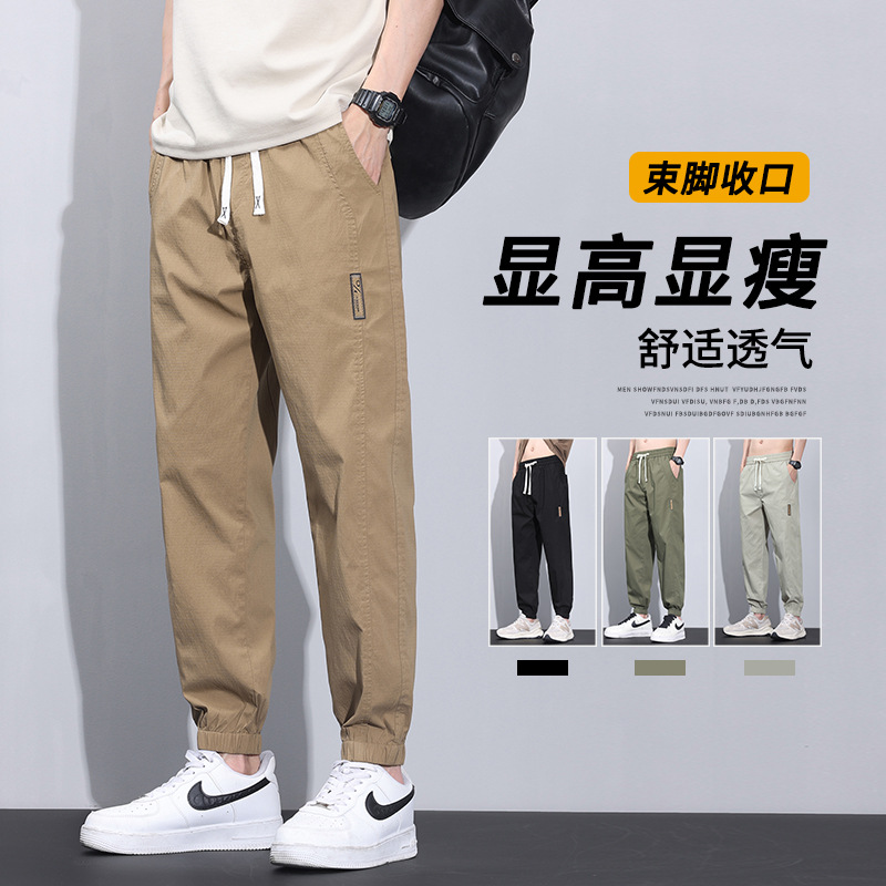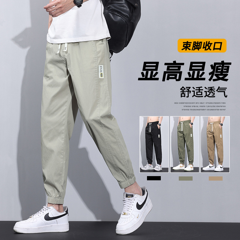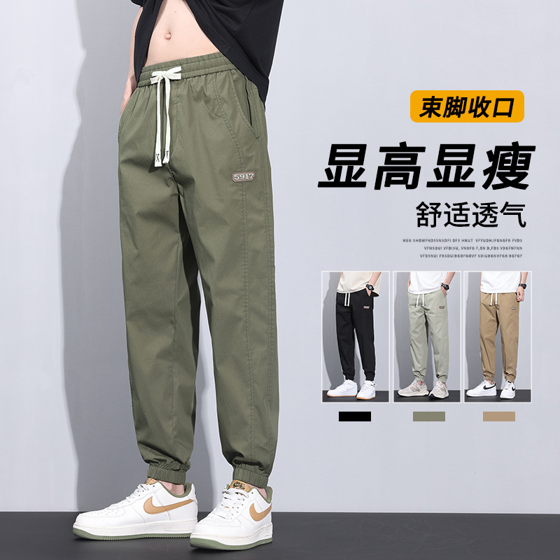 ハレンカジュアルパンツ男性夏の薄いファッションブランドの工装ズボン2024新百合縄ゆるい足のズボン