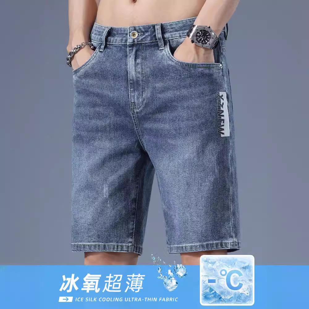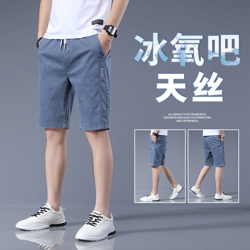 氷糸デニム半ズボン男性夏の薄いファッションカジュアル中ズボンの外にゆったりとした天糸男性五分ズボンのファッションカードを着ています。
