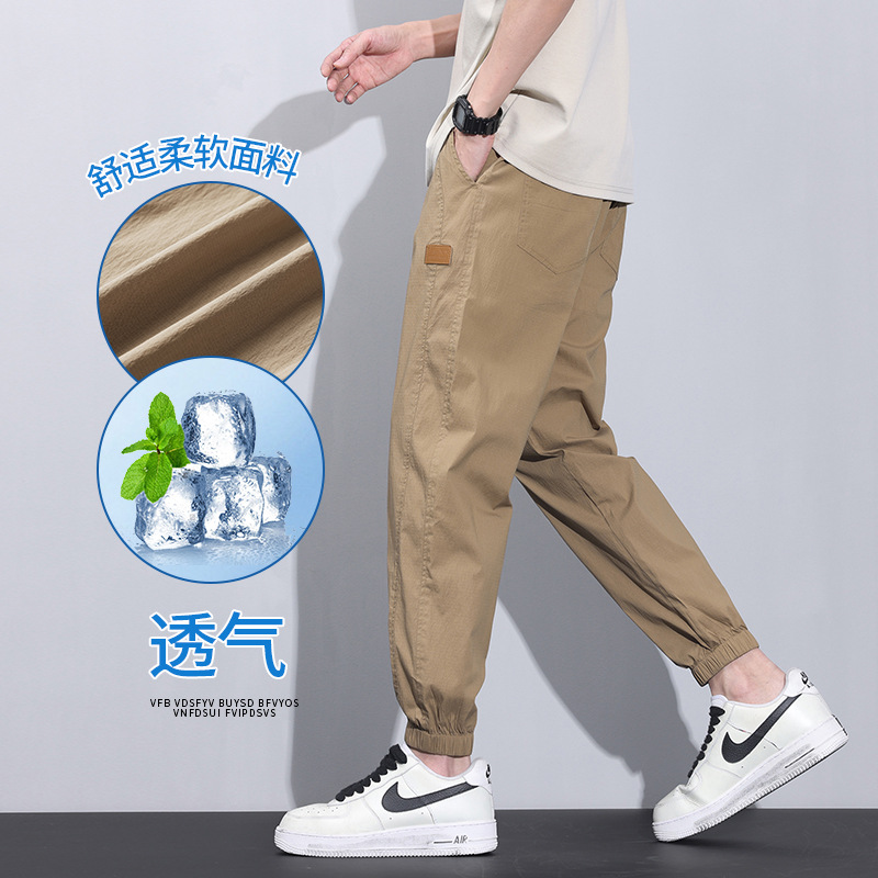 氷のズボンの男性の薄い金のゆるい束の足のハロンの9分のカジュアルなズボンの2024夏の速乾の運動のズボンの潮牌
