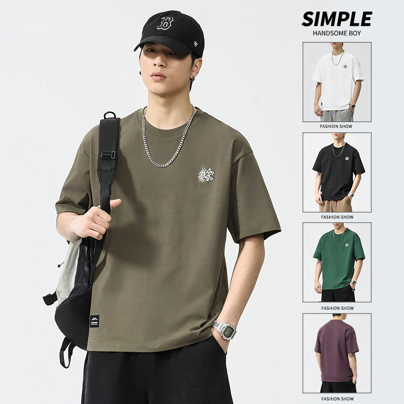夏半袖tシャツ男性ゆるい丸首カジュアル百合上着2024新サイズ半袖tシャツ男性服