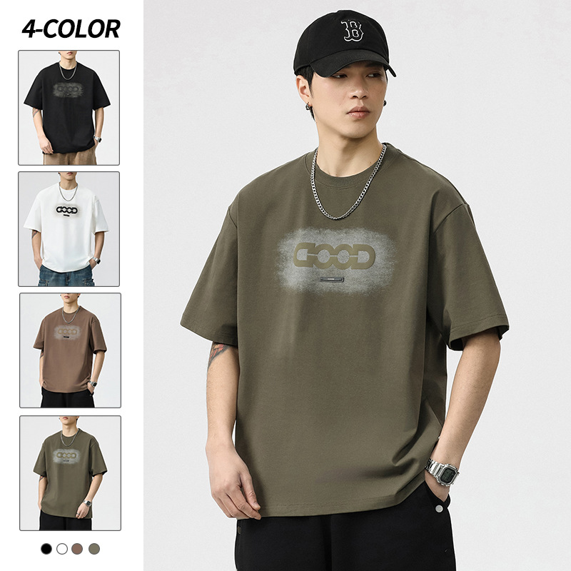 2024新型半袖tシャツ男性ファッション丸首ゆるい夏の薄いカジュアルプリント半袖tシャツ上着