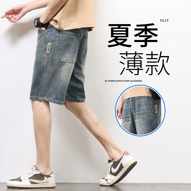 アメリカのレトロなデニムのショートパンツの男性2023は夏の薄いタイプのゆったりした男性のカジュアルな5分の中ズボンの男性を着ます。