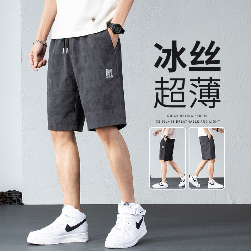 アイスレース運動半ズボン男性薄い夏のファッショングレーストレートビーチズボンゆるいカジュアル五分ズボン