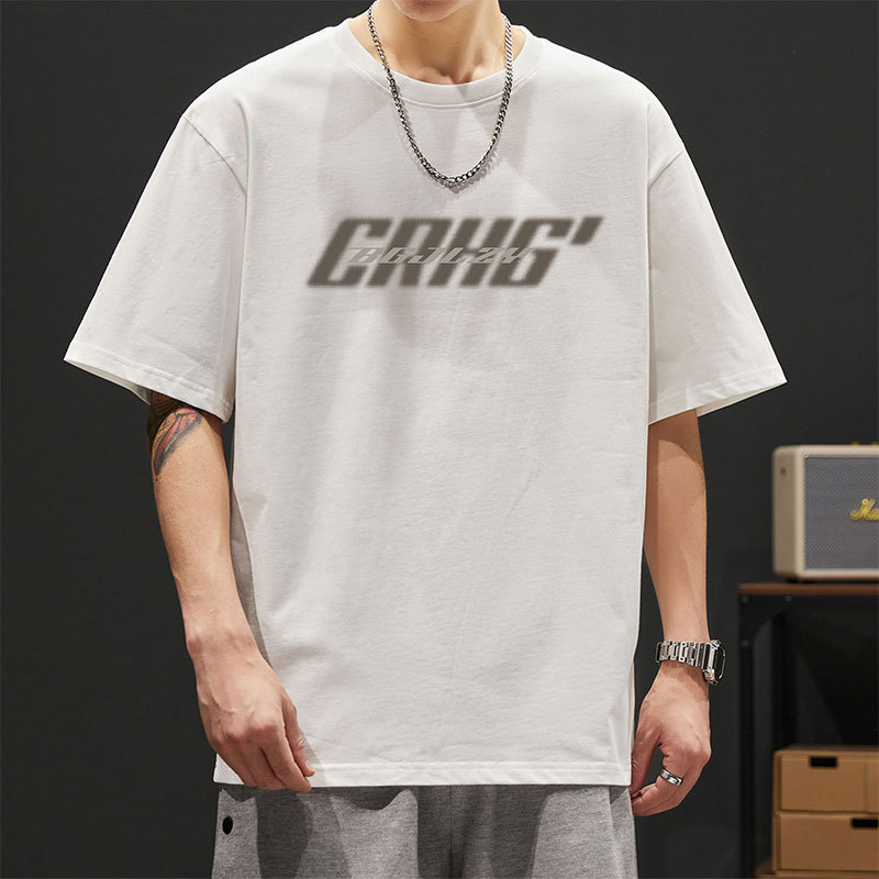 純綿アルファベットプリント半袖tシャツ男性夏ゆるい丸首ファッショントレンドカジュアルtシャツ上着男性服
