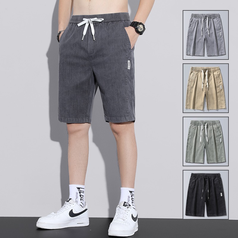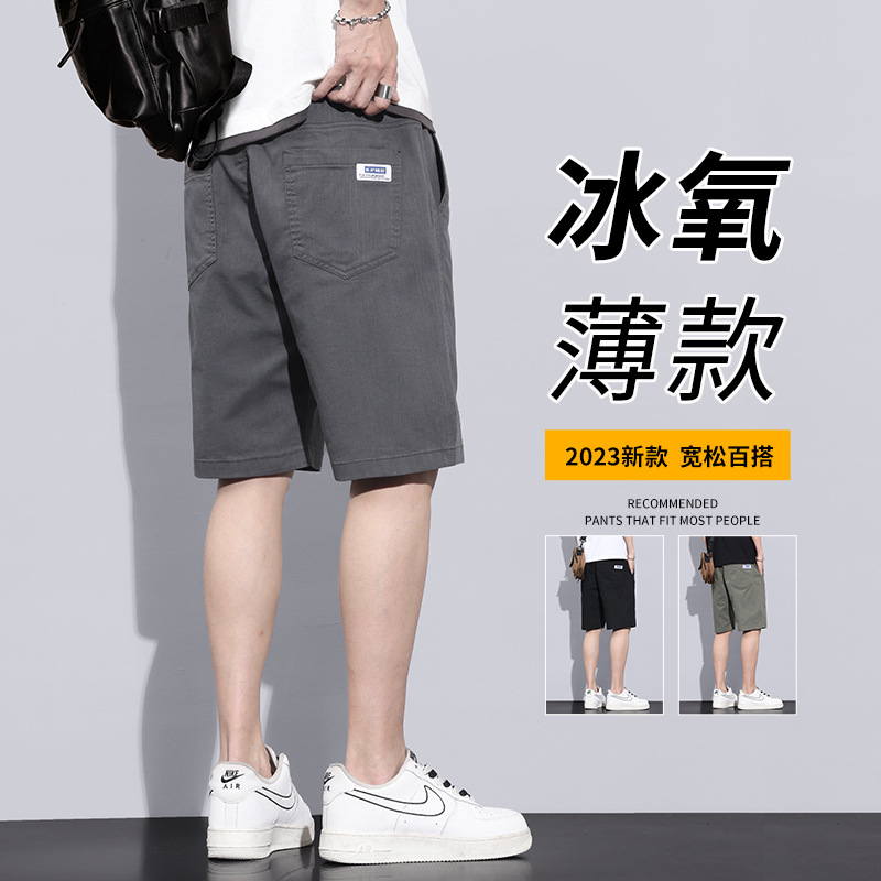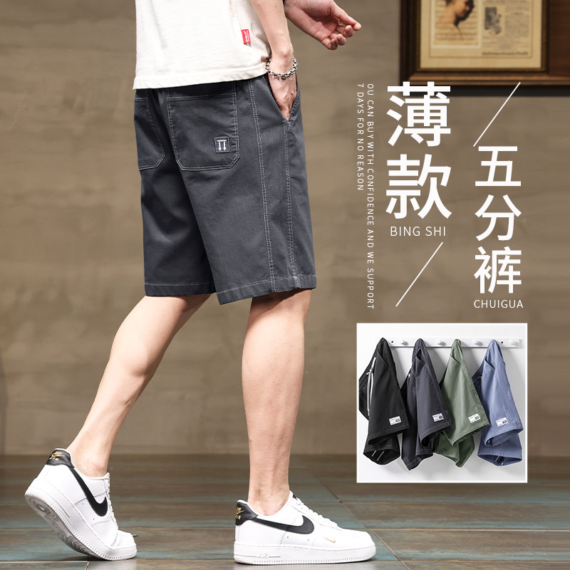 男性用半ズボン夏の氷糸の薄いタイプの外着男性用スポーツファッションブランドの工装カジュアルパンツ男性用五分ズボン夏